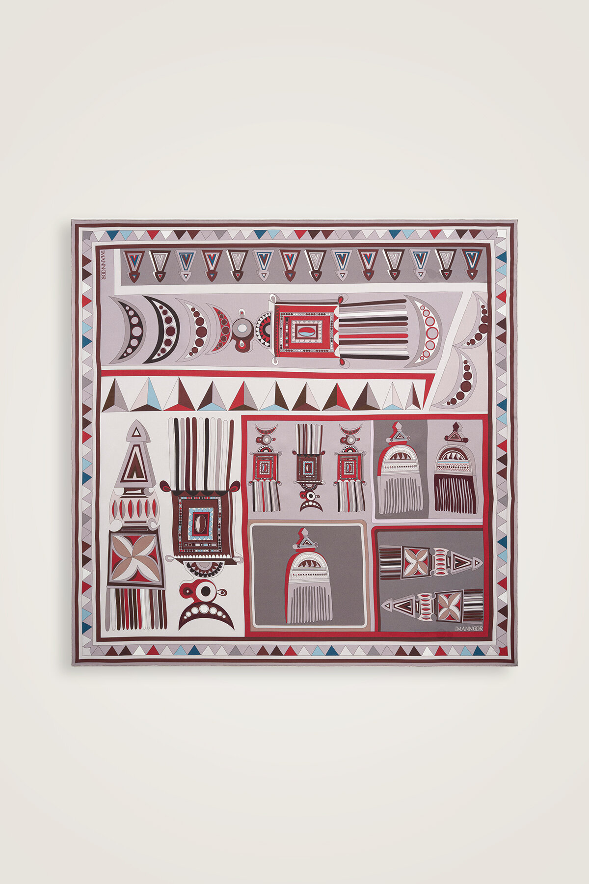 African Khaki/Gray-Red Double-Sided Twill Silk Scarf 94x94
