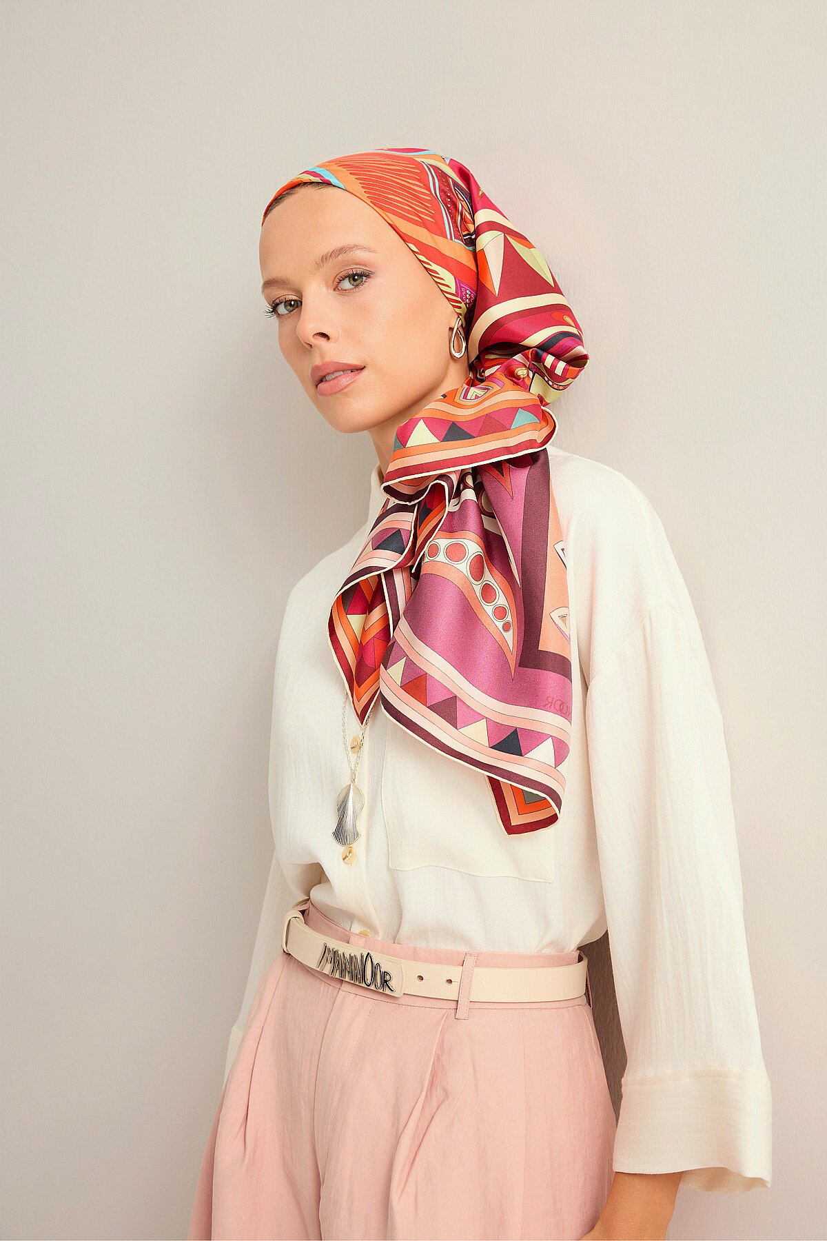 İmannoor’un güçlü ve özgün desen anlayışını yansıtan Afrika Çift Taraflı Tivil İpek Eşarp, %100 ipek tivil dokusunun tok ama akışkan yapısıyla zarif ve net bir duruş sunar; 94×94 cm ölçüsüyle klasik ve modern bağlama stillerine uyum sağlarken, çift taraflı tasarımı sayesinde iki farklı görünümü tek parçada sunarak çok yönlü bir kullanım imkânı verir, Afrika esintilerinden ilham alan desenleriyle stile karakter ve dinamizm kazandıran bu eşarp, ipeğin doğal parlaklığı ve nefes alabilen yapısıyla gün boyu konfor ve şıklığı bir arada sunan zamansız bir aksesuar olarak öne çıkar.