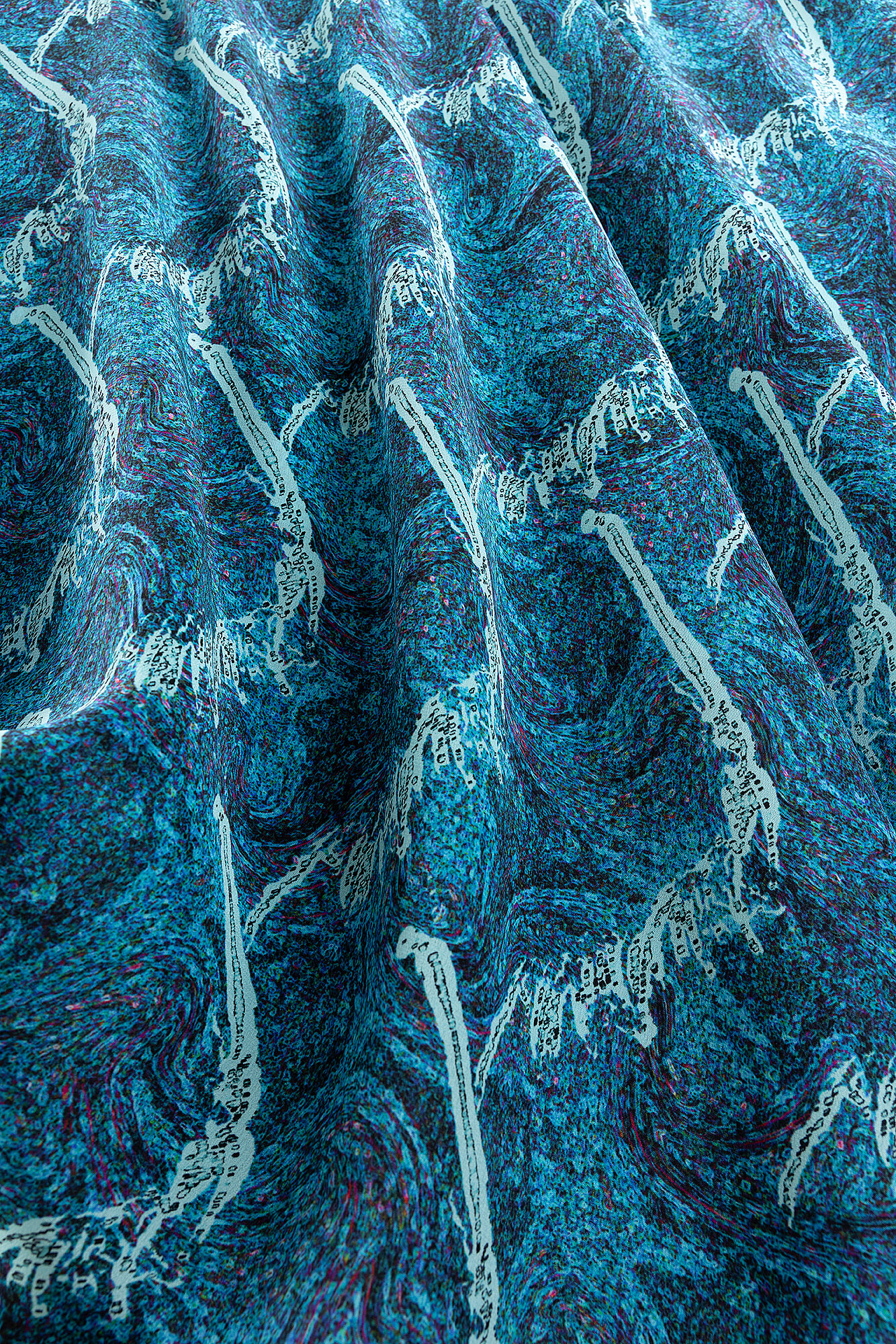 “Alaz Atları” şal, alevin forma dönüşmüş hâlidir: hareketin, enerjinin ve dönüşümün simgesi olarak, at siluetine bürünen alazlardan ilham alır.