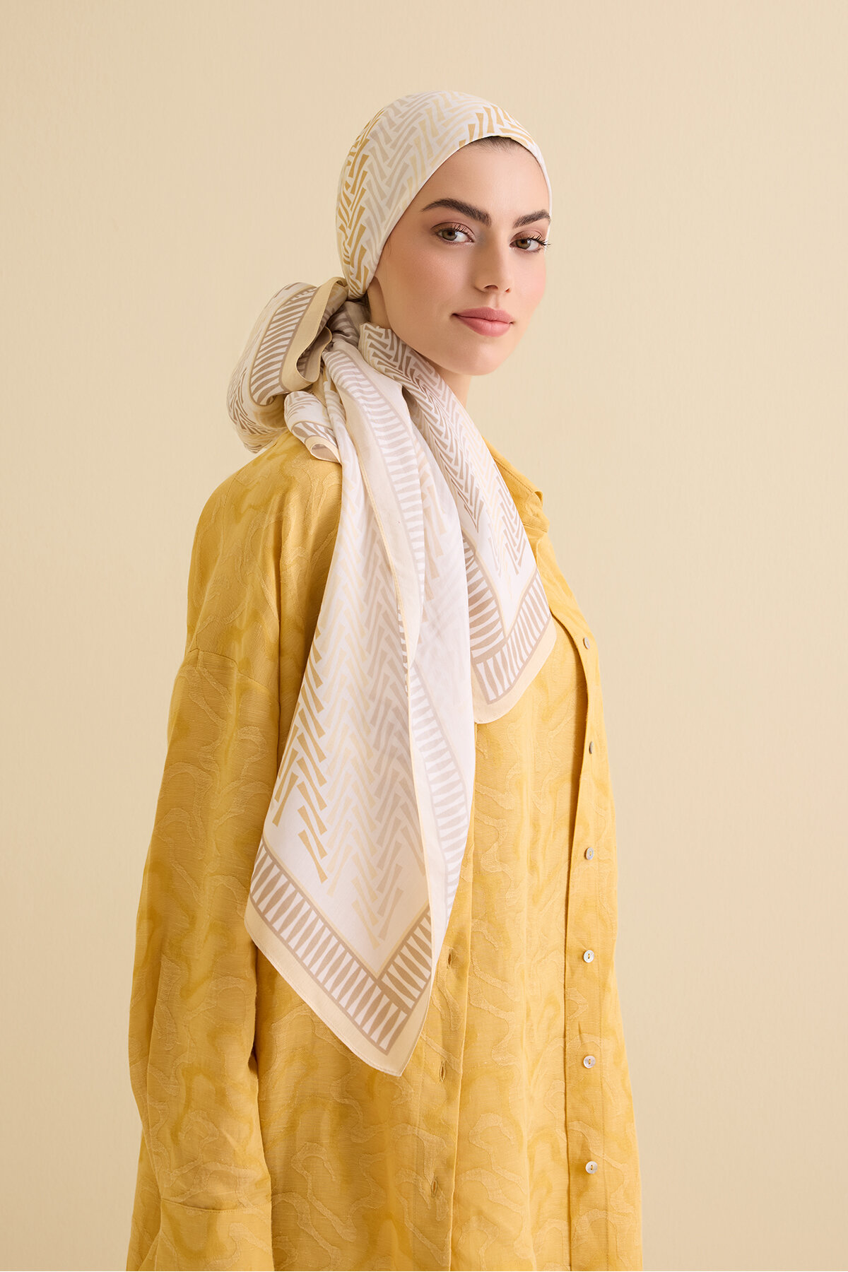 70x210 cm ölçüsü sayesinde çok yönlü kullanım imkânı sağlar. Günlük kombinlerde olduğu kadar özel günlerde de kendine zarif bir yer bulur. Hafif yapısıyla omuzda, boyunda ya da başörtüsü olarak kullanıldığında dökümlü ve doğal bir görünüm kazandırır.