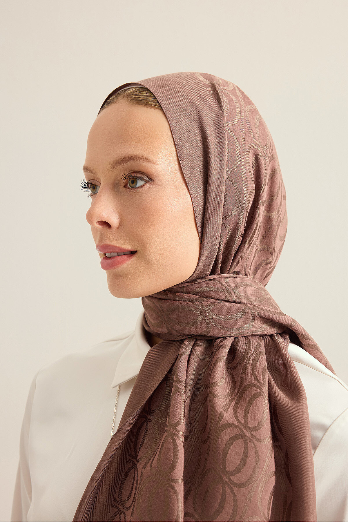 Dama Desen Kahverengi Naia Pamuk Şal 70x200