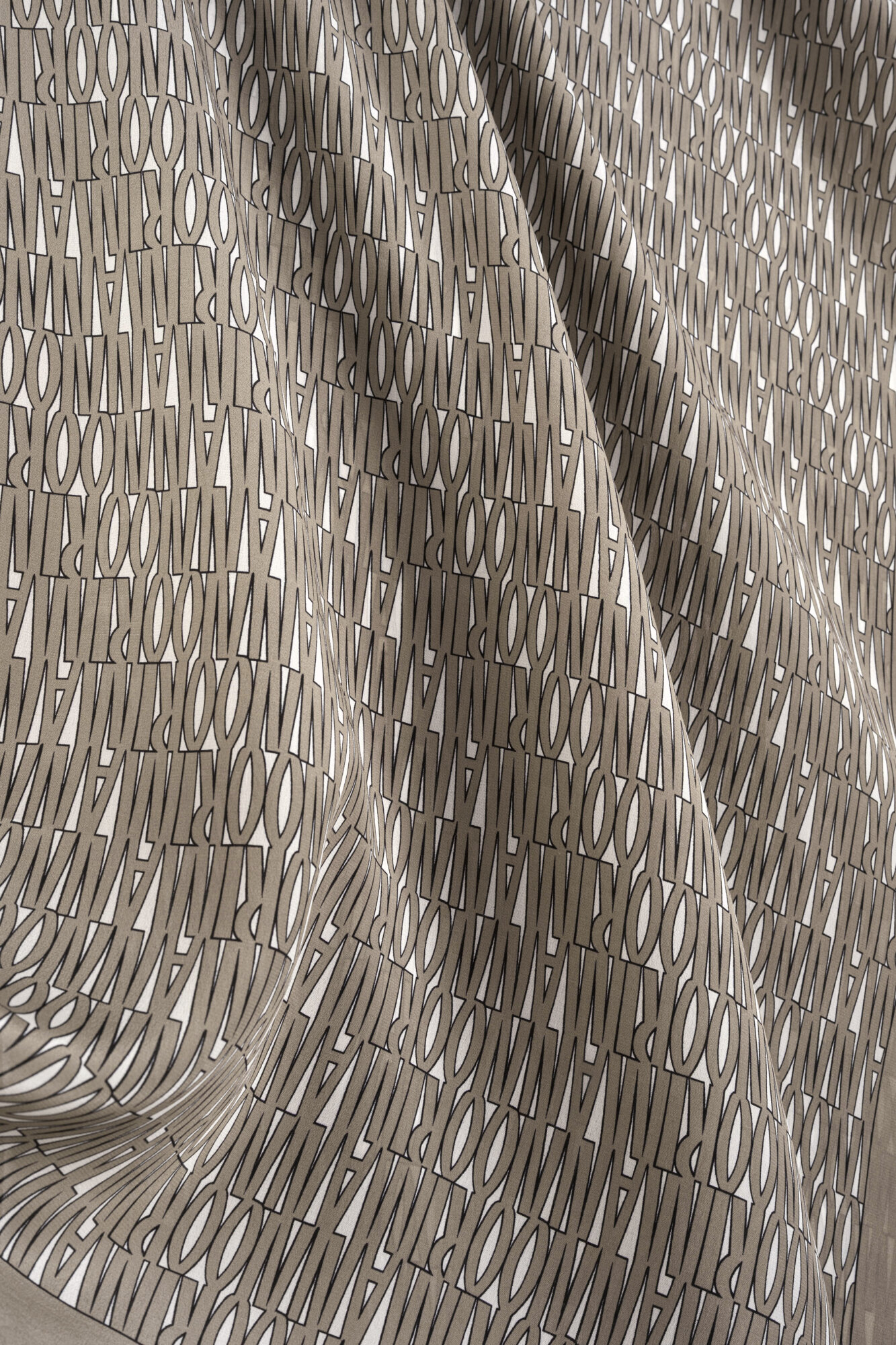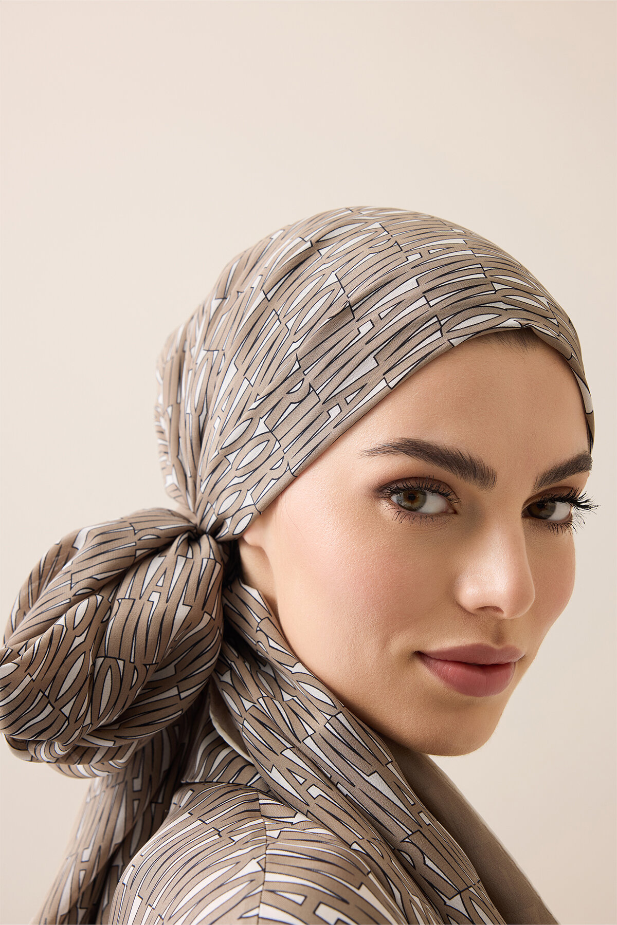 Yazı detaylarının modern görünümü, şala karakteristik ve zarif bir ifade kazandırır.
