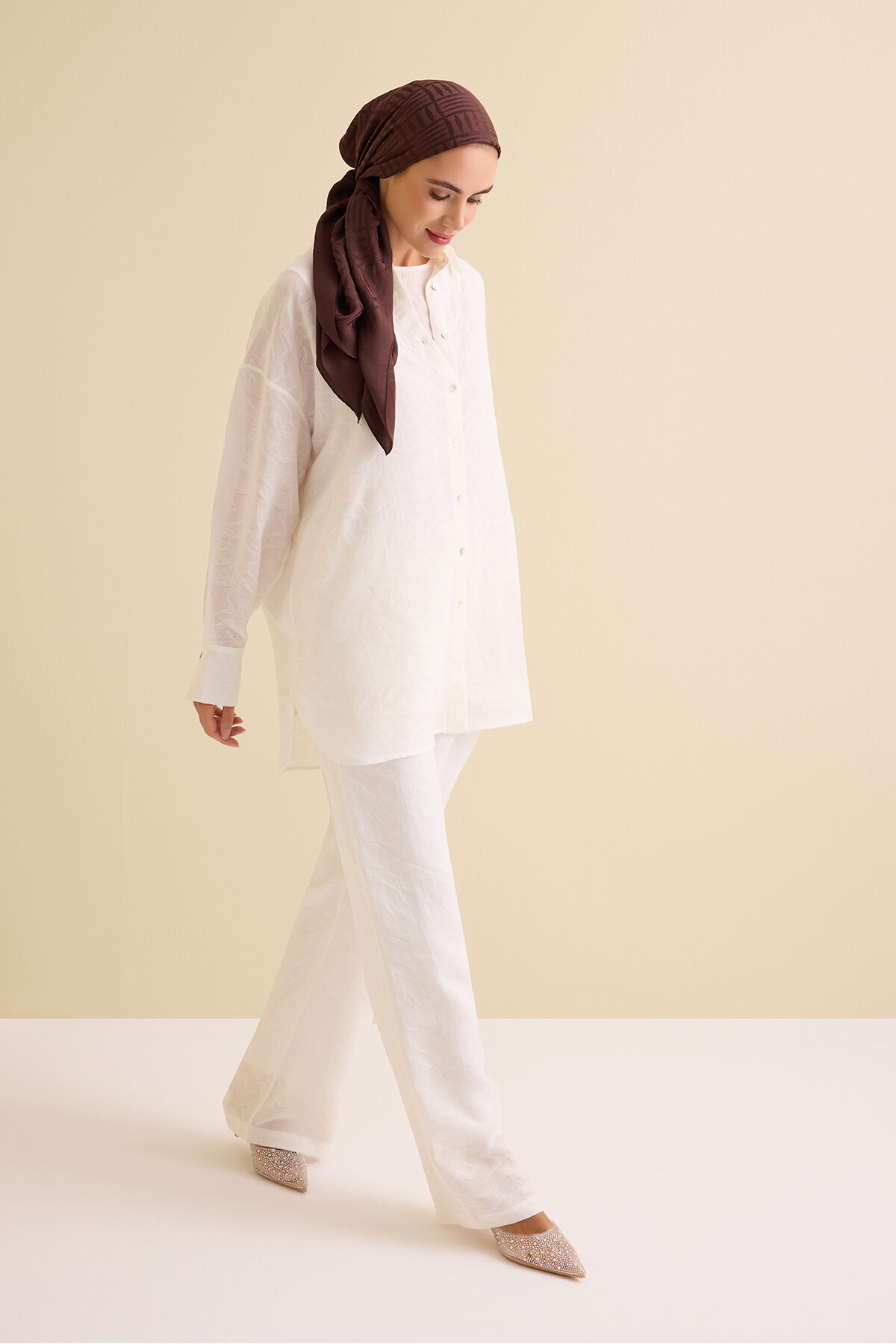 Doğallığın ve zarif dokuların buluştuğu Keten Jakar Gömlek, %100 keten kumaşıyla hafiflik ve konfor sunuyor. Nefes alabilen yapısı sayesinde özellikle sıcak günlerde ideal bir seçim olurken, jakar dokusu gömleğe sofistike bir hava katıyor.
