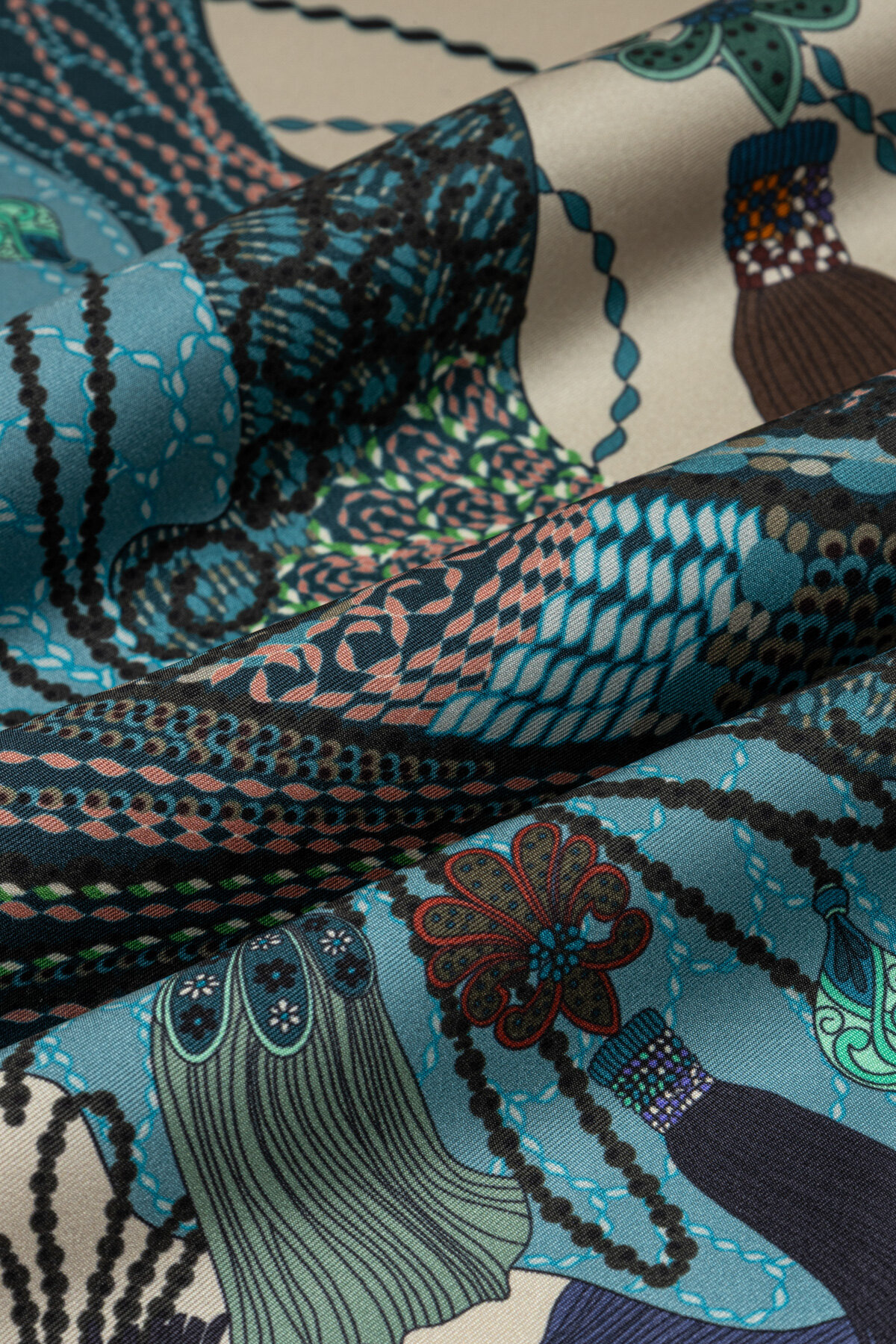 Kuşlu Noor Tivil İpek Eşarp ile stilinizde doğanın zarafetini taşıyın.