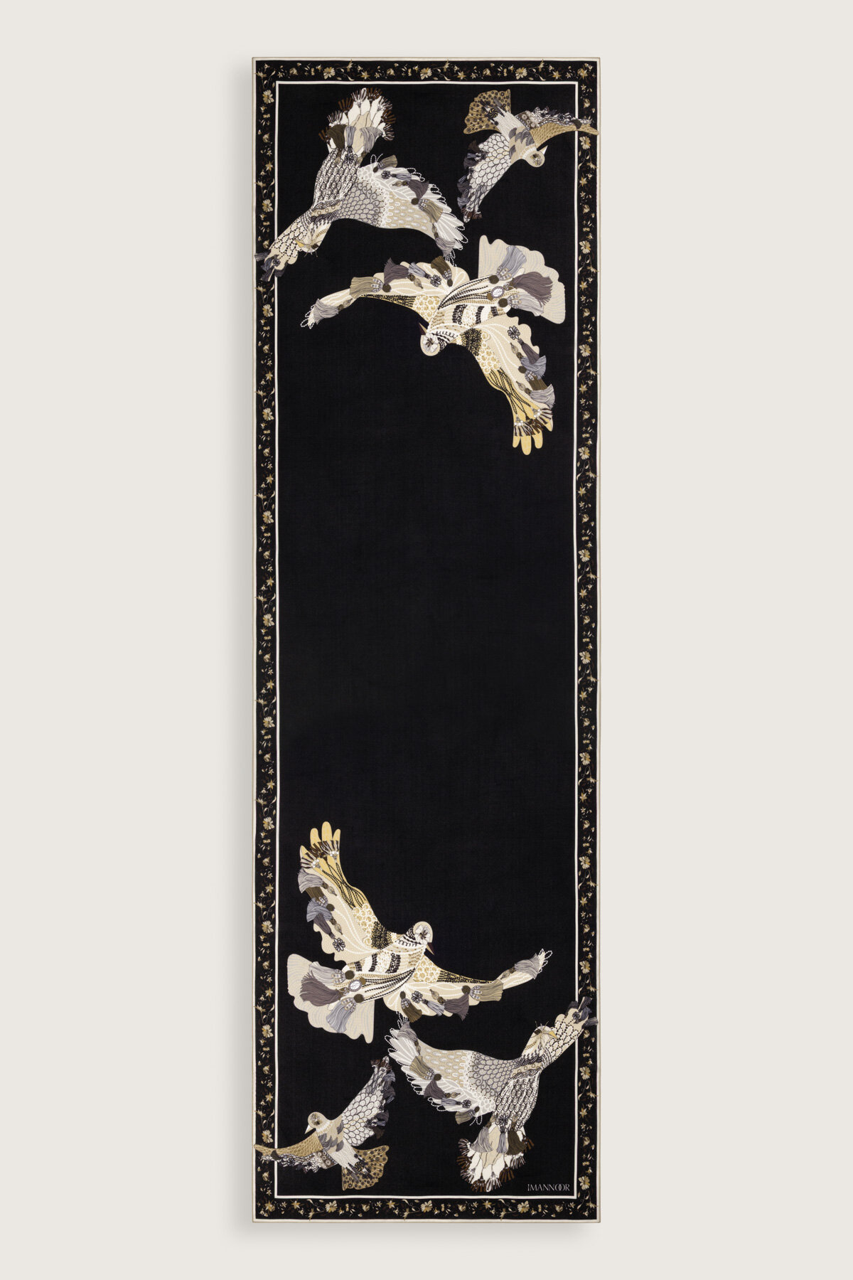 Kuşlu Noor Krep İpek Gömlek Şalı ile stilinize zarif bir özgürlük dokunuşu ekleyin.