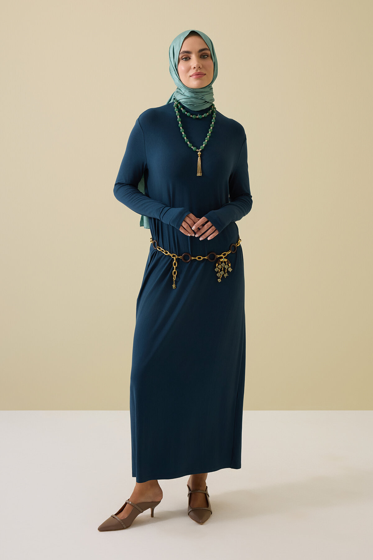 İmannoor’un özgün tasarımıyla buluşan Boğazlı Penye Elbise, %96 Tensel ve %4 Likra içeriğiyle hafif, nefes alabilen ve esnek bir yapı sunar. Yumuşak dokusu gün boyu konfor sağlarken, yuvarlak yaka tasarımı minimal ve zamansız bir şıklık kazandırır. Esnek yapısı sayesinde vücuda uyum sağlayarak hareket özgürlüğü sunar ve hem günlük hem de özel anlarda şık bir tamamlayıcı olur.