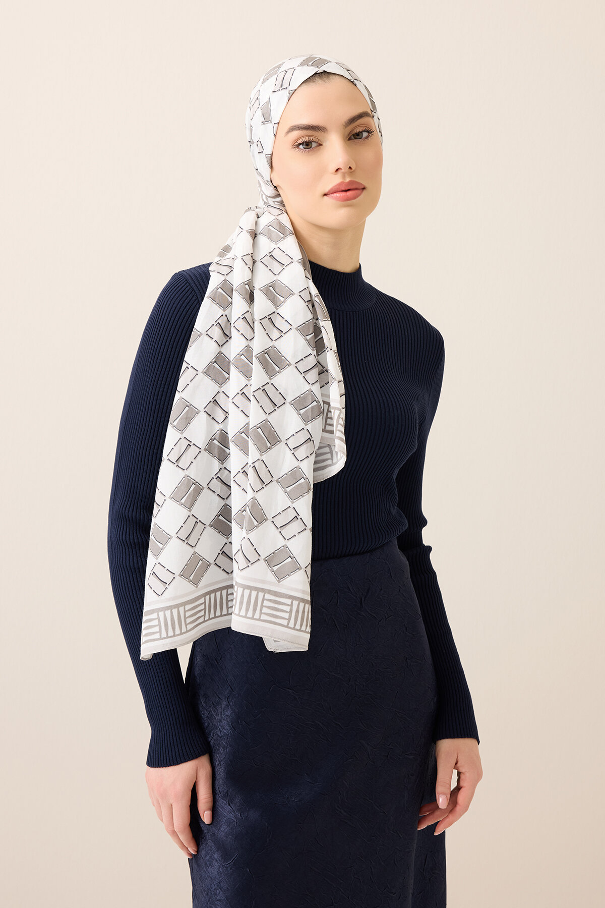 Pamuk ve floşun doğal uyumu, şala hem şık hem de modern bir görünüm kazandırır. Dört mevsim kullanıma uygun olan bu şal, sade ve zamansız stil anlayışını benimseyenler için mükemmel bir tercihtir.