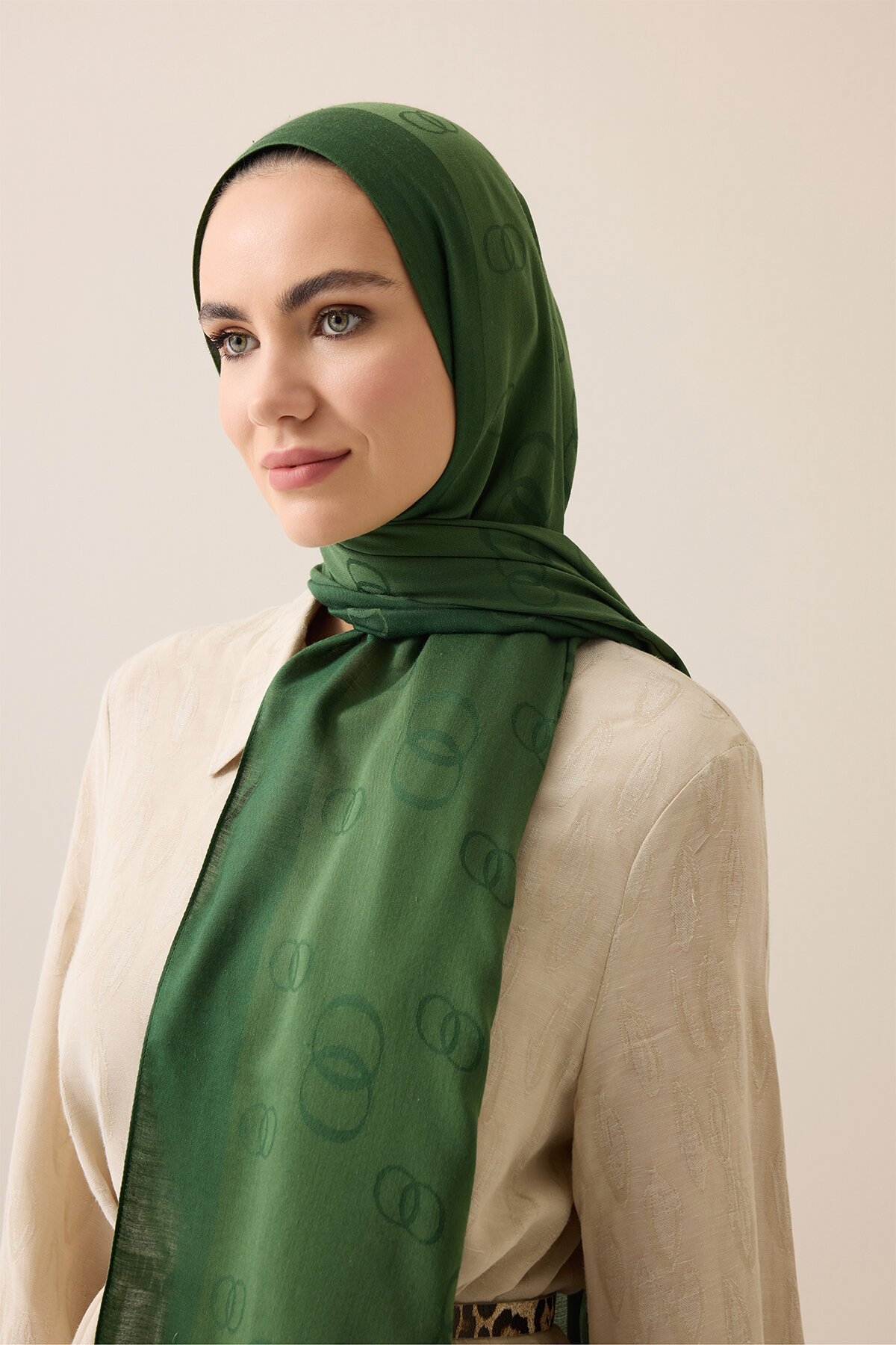 İkonikleşen sembolü, iç içe geçen iki 'O' harfi, şalın tasarımında merkezi bir rol oynuyor. Bu harfler, hem yatay hem de dikey olarak sıralanarak modern ve sofistike bir desen oluşturuyor. Bu desen, şalınıza hem karakteristik bir görünüm kazandırıyor hem de farklı stillerle kolayca uyum sağlıyor.