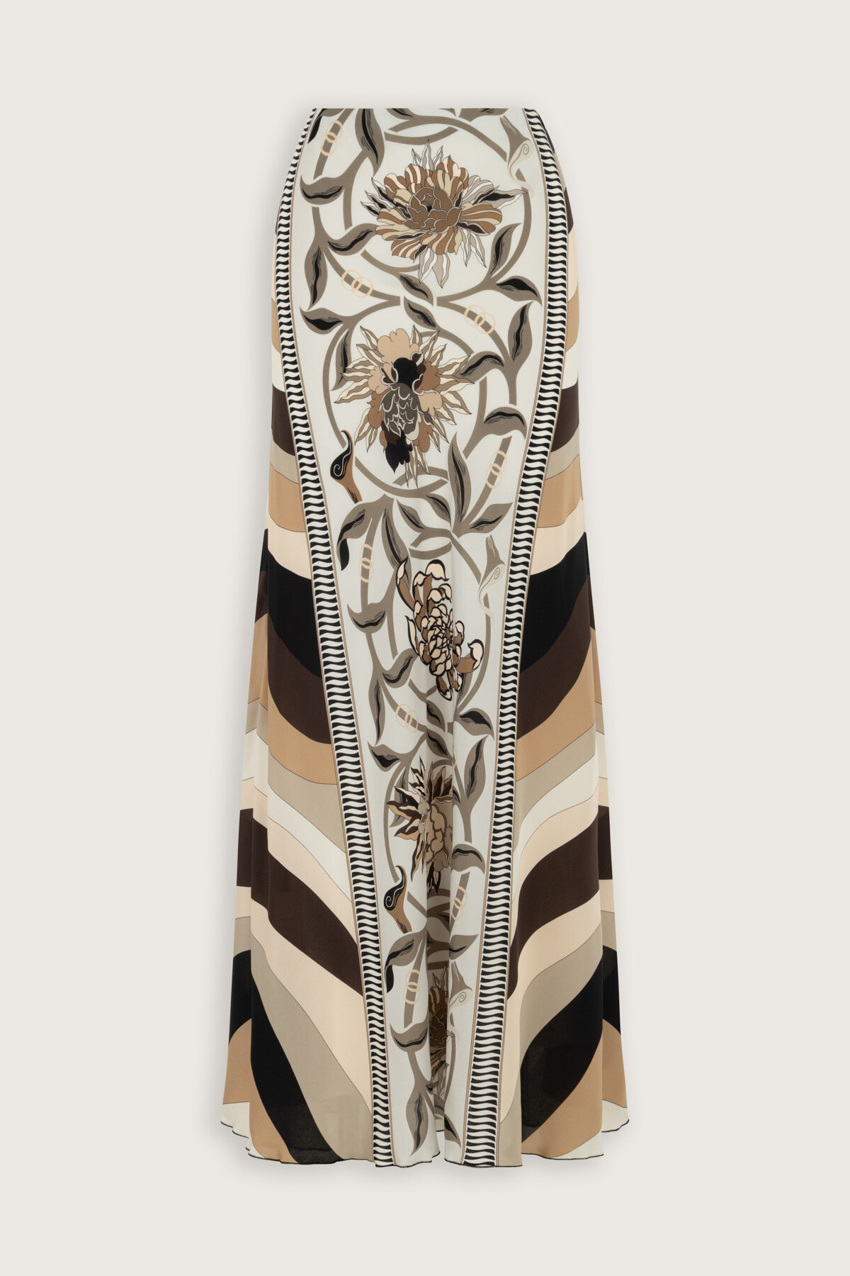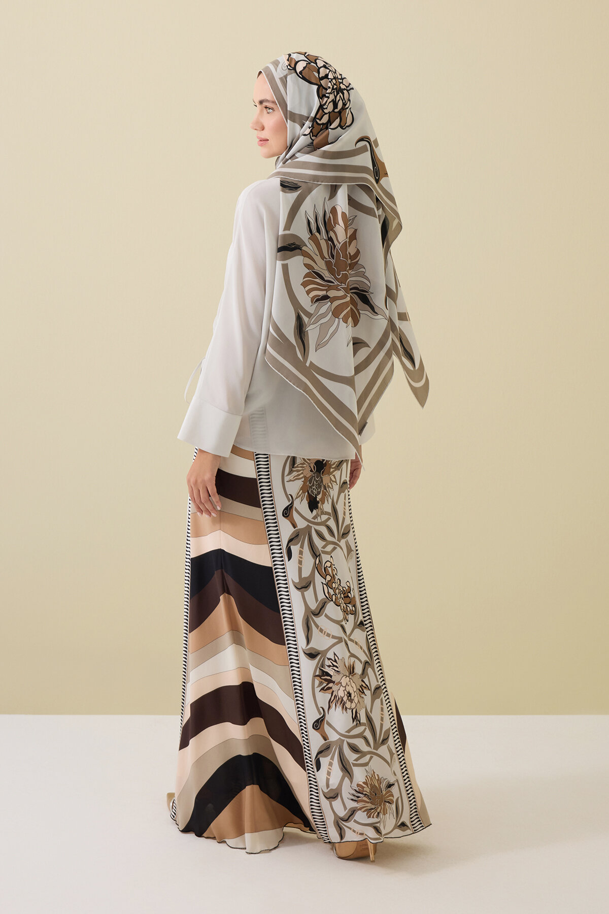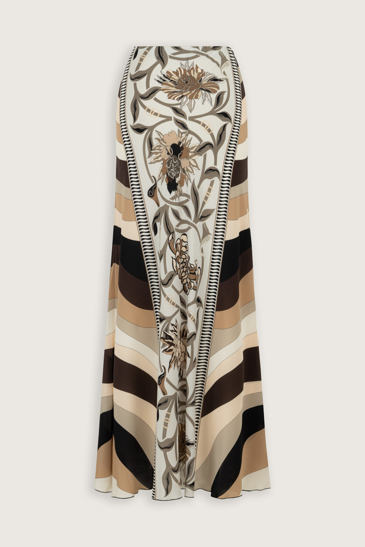%100 saf ipekten üretilen Çiçek Yolu İpek Verev Etek, yumuşak dokusu ve doğal parlaklığıyla feminen bir şıklık sunar. Verev kesimi sayesinde vücuda mükemmel otururken hareket ettikçe zarif bir dalgalanma oluşturur.