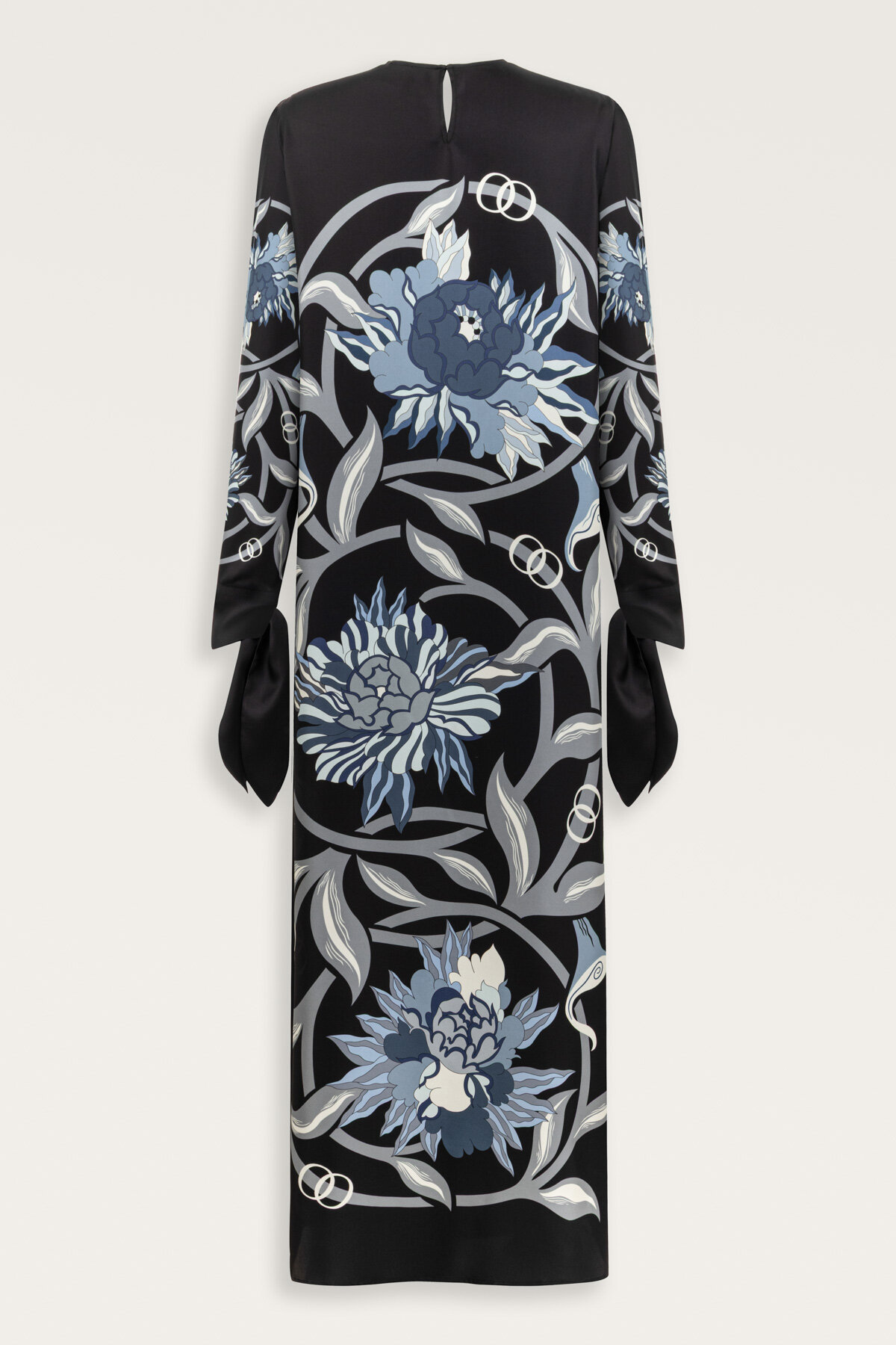 İmannoor’un doğadan ilham alan zarif çizgileriyle şekillenen Çiçek Yolu Manşet Detaylı İpek Elbise, feminen duruşu ve %100 saf ipek dokusuyla sofistike bir şıklık sunar.
