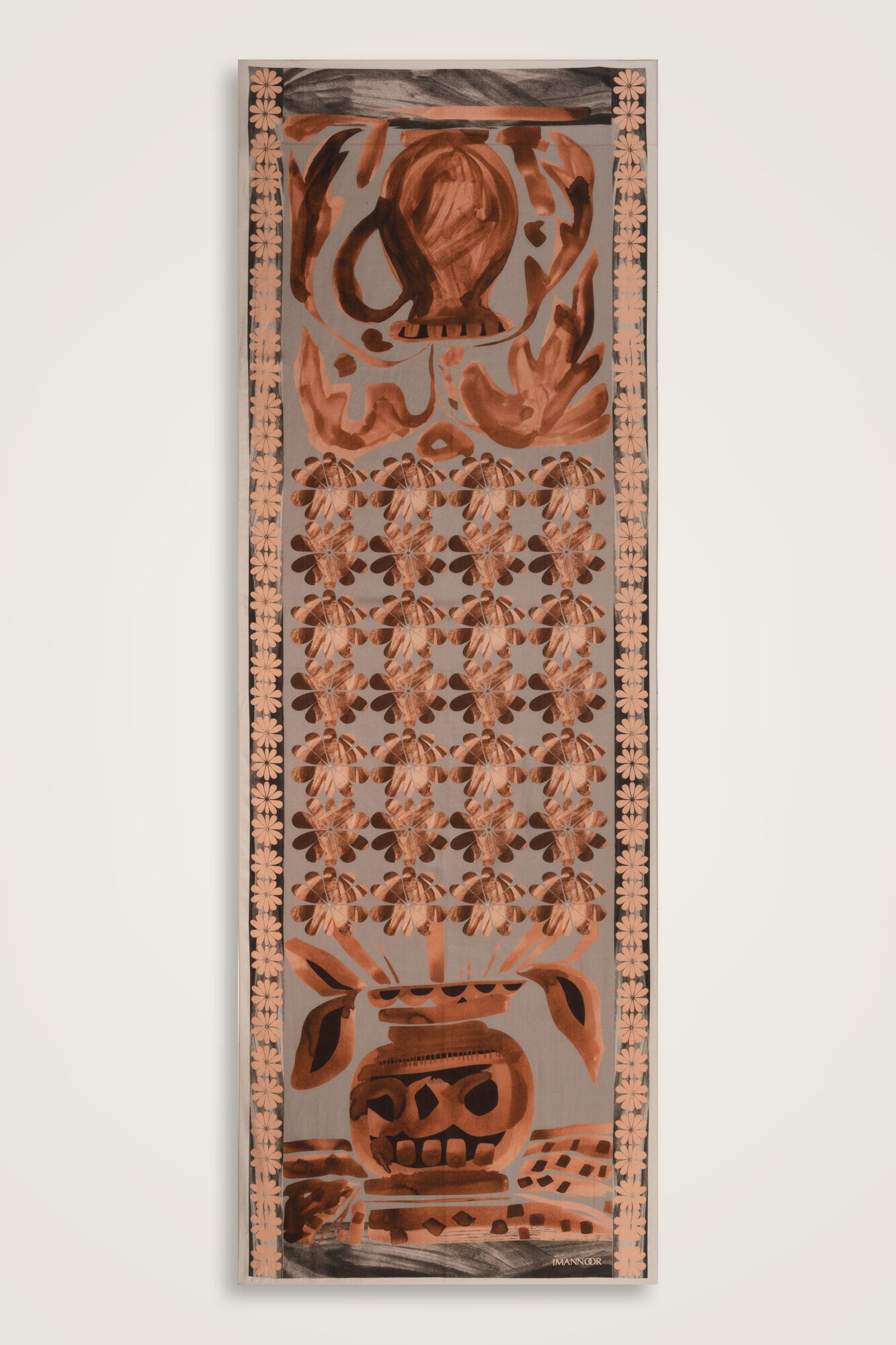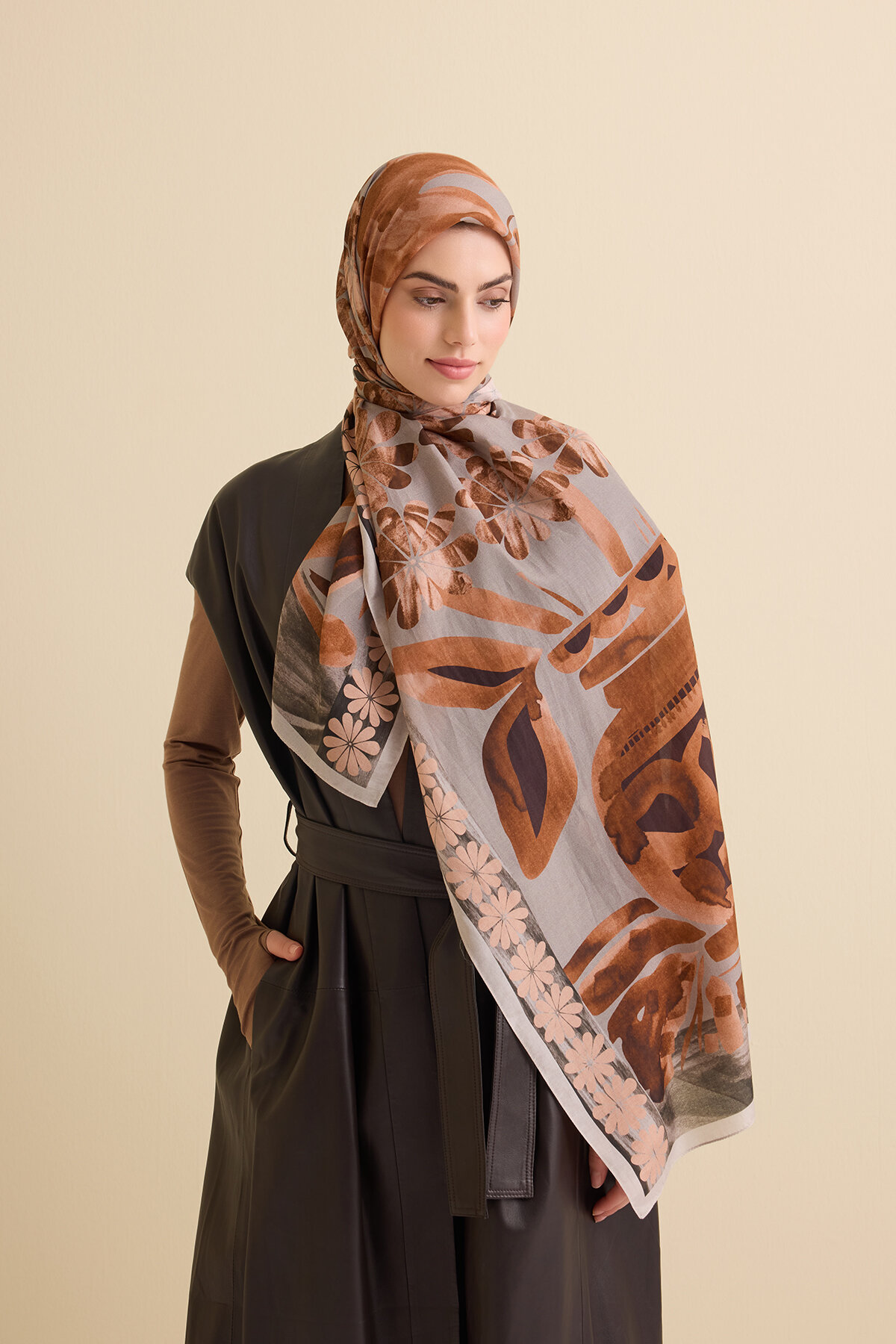 72x212 cm ölçüsü sayesinde şal, boyun, omuz veya aksesuar olarak çok yönlü kullanılabilir. Çift saksı desenleri, şala sofistike bir hareket ve modern bir stil kazandırır.