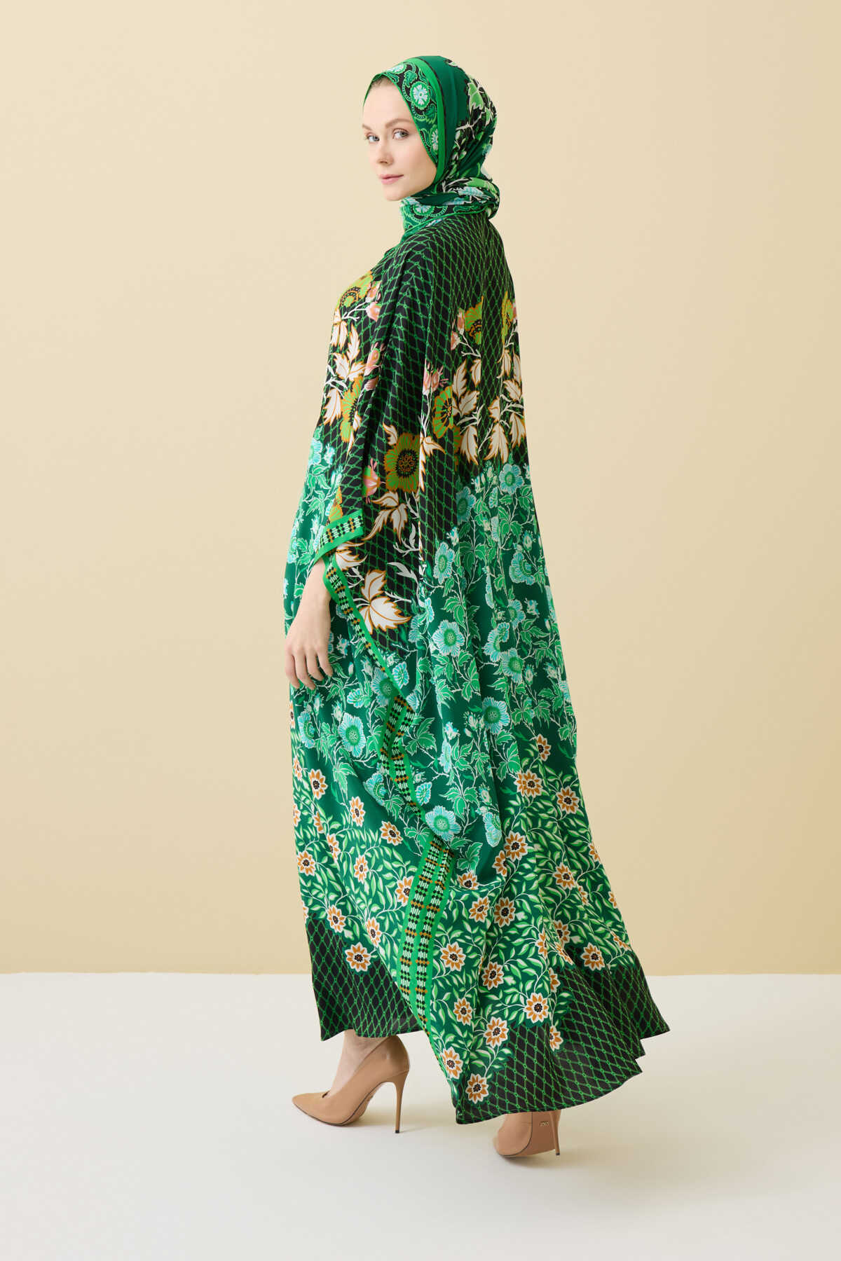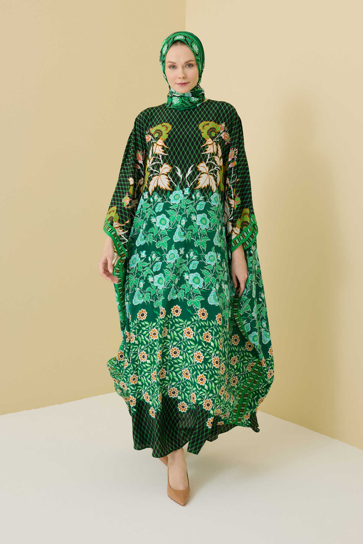 Özel günlerden günlük şıklığa kadar geniş bir kullanım alanına sahip olan Çit İpek Kaftan, aynı serinin Çit Çift Taraflı Eşarp modeliyle kusursuz bir uyum sağlıyor. Desen detaylarındaki incelik ve sofistike renk geçişleri, kombininize derinlik kazandırırken, klasik ve modern tarzı mükemmel bir dengede buluşturuyor.