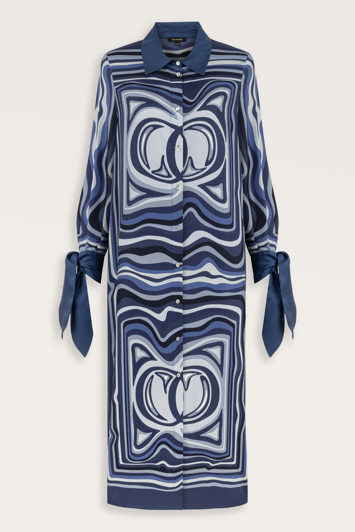 Dalgaların İçinde İpek Gömlek Elbise ile stilinizde hem dinginliği hem de sofistike şıklığı bir arada taşıyın.
