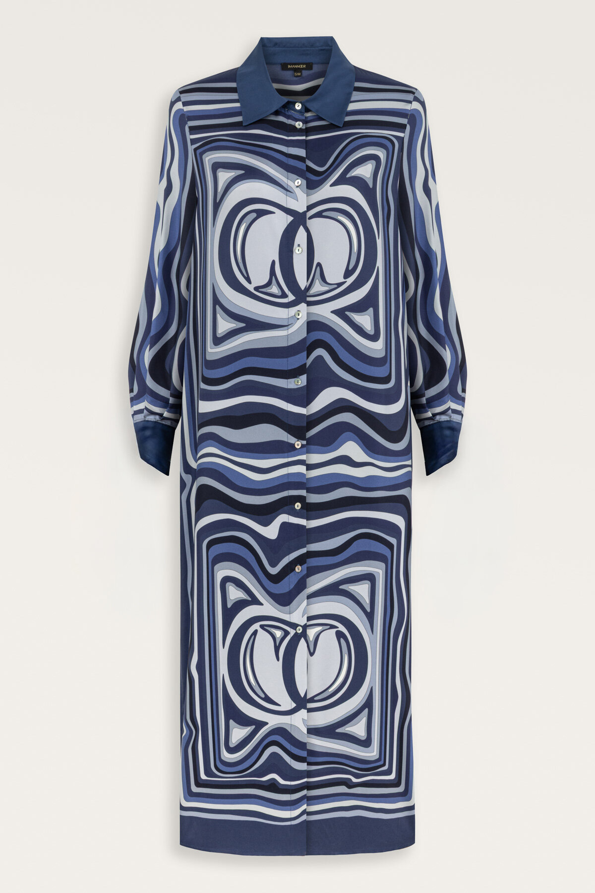 İmannoor’un sanatsal desen yorumuyla hayat bulan Dalgaların İçinde İpek Gömlek Elbise, deniz dalgalarının ritmini ipeğin doğal akışkanlığıyla buluşturuyor. %100 saf ipek kumaşı, hem cildinize nazik dokunuşu hem de kendine has parlaklığı ile lüks bir his sunar.