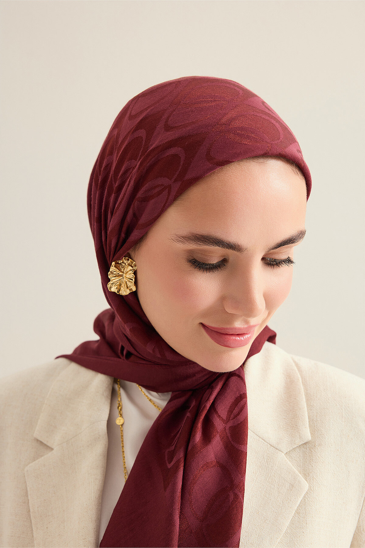 İman Kare V Bordo Naia Pamuk Eşarp 90x90