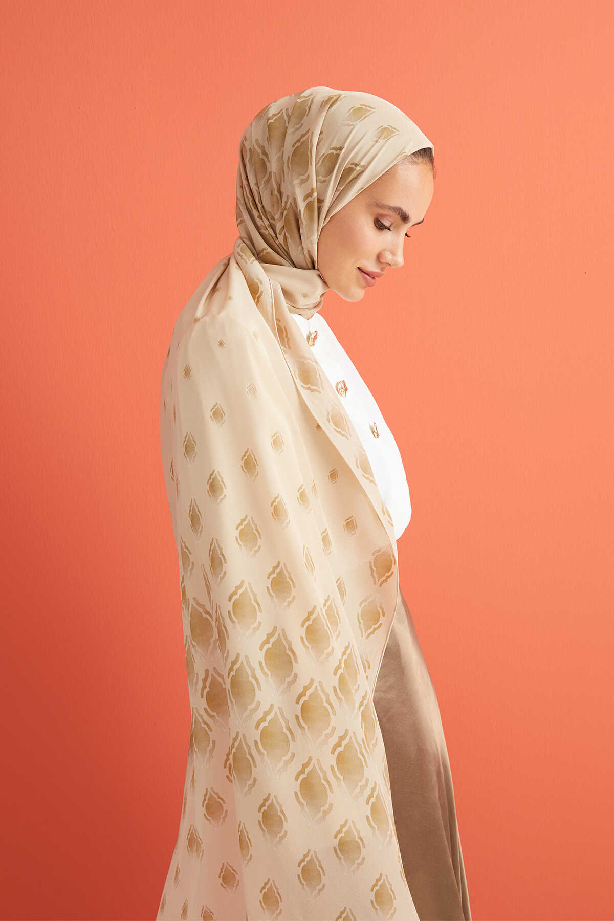 Lüks Dokunuş: Yumuşak ve hafif yapısıyla bu ipek şal, cildinize nazikçe dokunur. Bej rengi, her mevsim ve her kombinle uyum sağlayacak nötr bir ton sunar.