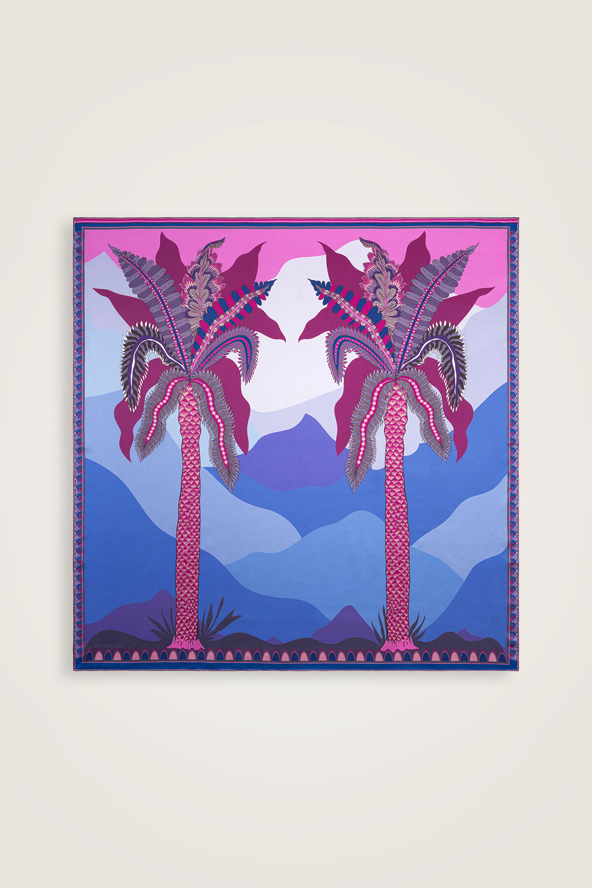 Date Palm Tree Blue-Fuchsia Double-Sided Twill Silk Scarf