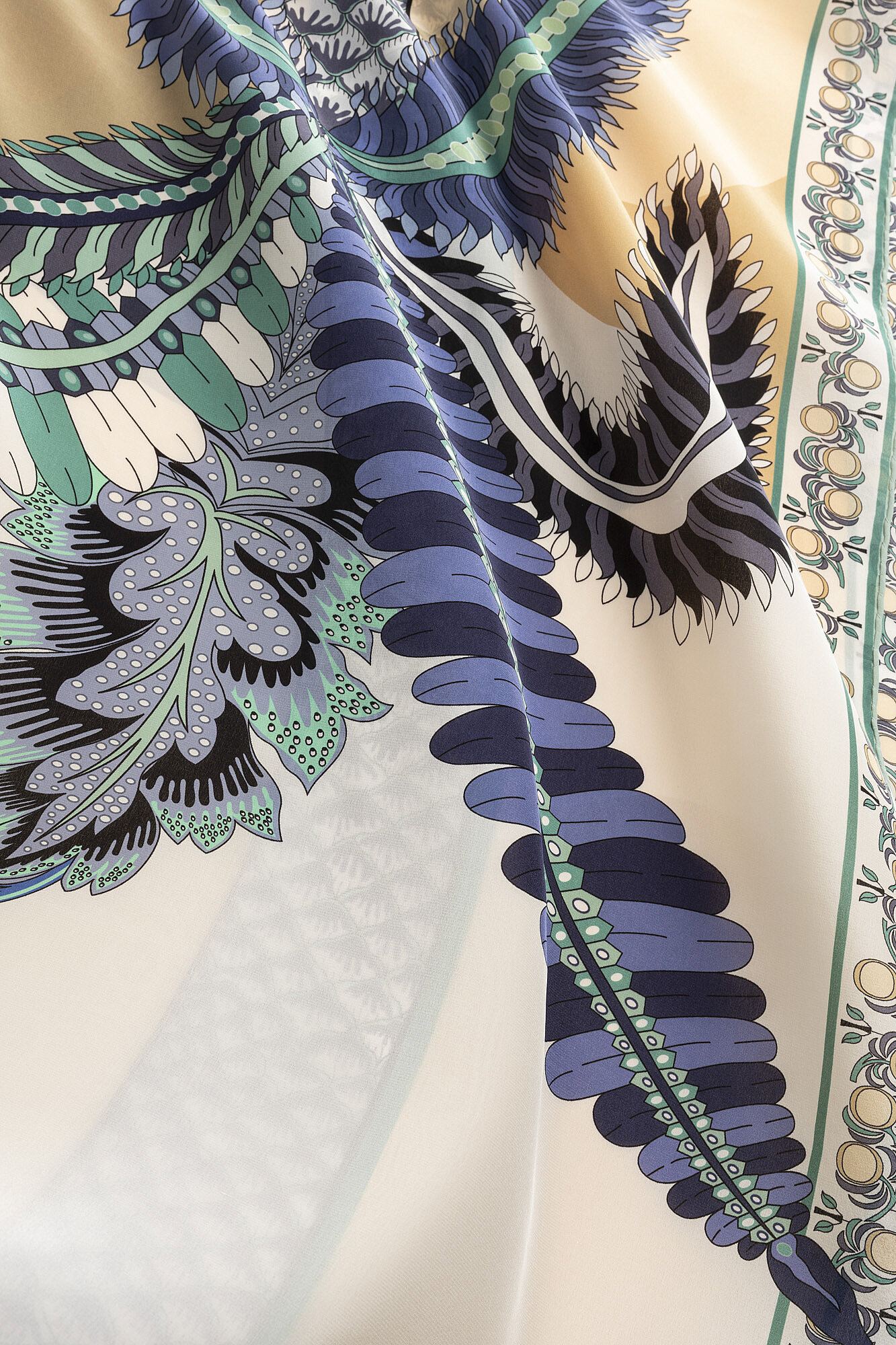 Hayat Turquoise Crepe Silk Kaftan Shawl