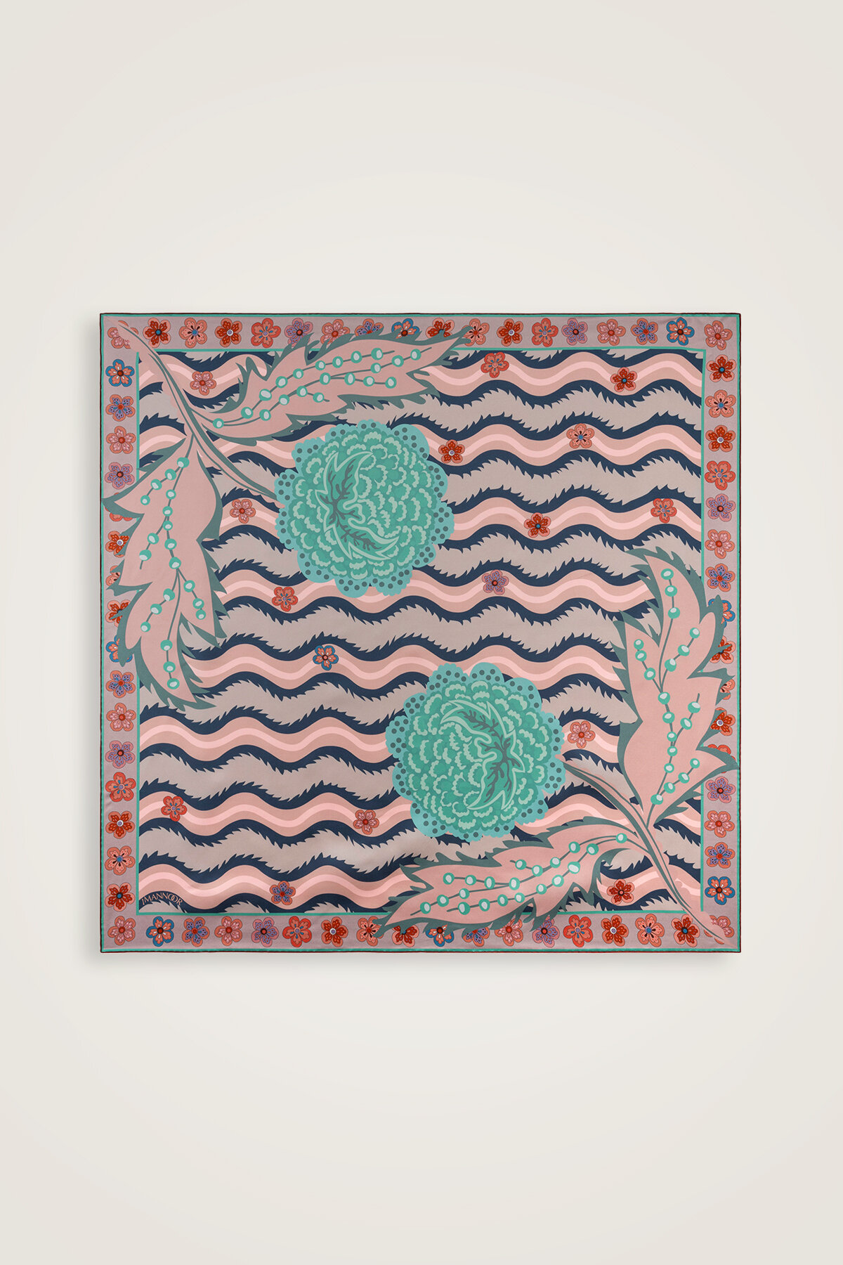Dere Gülü Mercan-Mint Çift Taraflı Tivil İpek Eşarp 94x94
