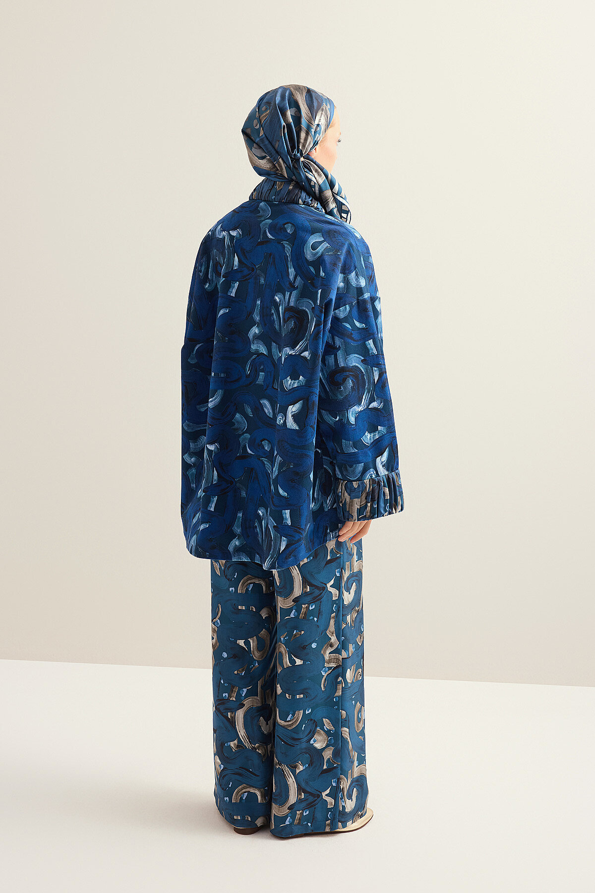 İmannoor’un doğadan ilham alan akışkan tasarım anlayışını yansıtan %100 ipek Dere Yolu Tivil İpek Pantolon, tivil ipeğin tok ama akışkan dokusu sayesinde vücutta dengeli ve zarif bir duruş sunar; dere yolundan ilham alan desenli özel tasarımıyla stile doğal bir hareket ve sofistike bir karakter kazandırırken, ipeğin doğal parlaklığı lüks bir görünüm sağlar, hafif ve nefes alabilen yapısı gün boyu konfor sunar ve hem günlük şık kombinlerde hem de özel davetlerde zamansız bir parça olarak gardırobunuzda öne çıkar.