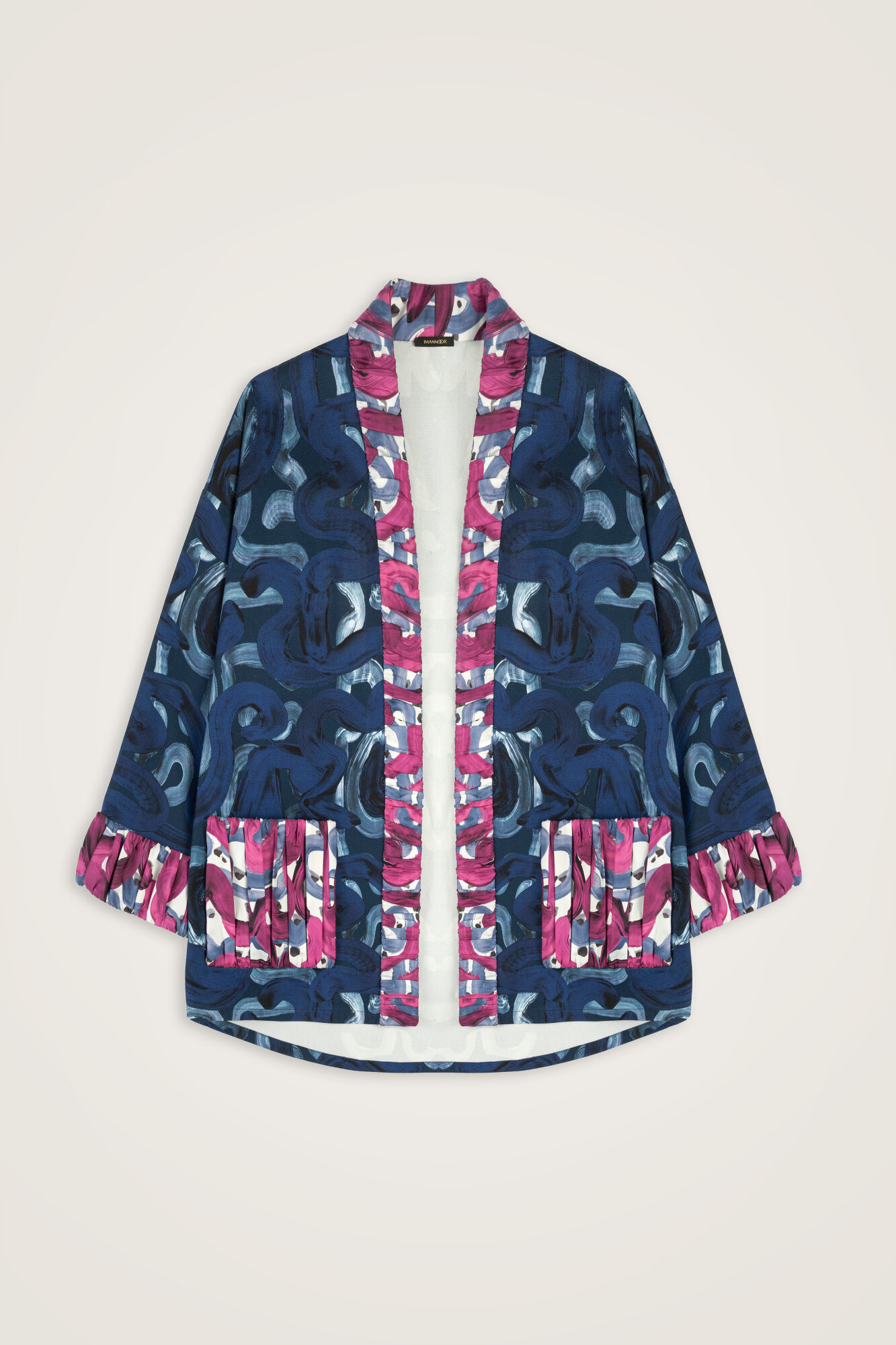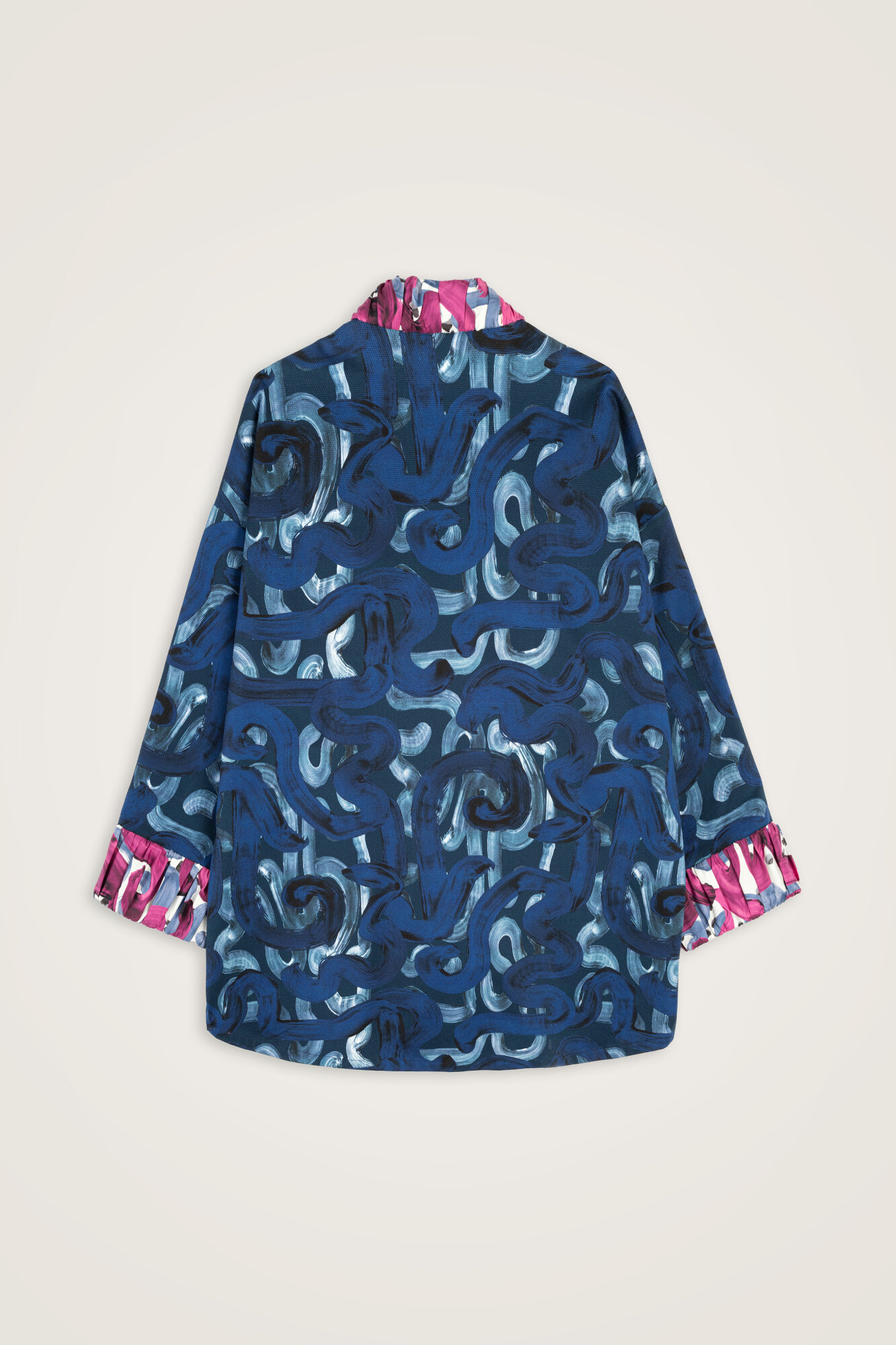 Dere Yolu Fuşya-İndigo Koton Ceket