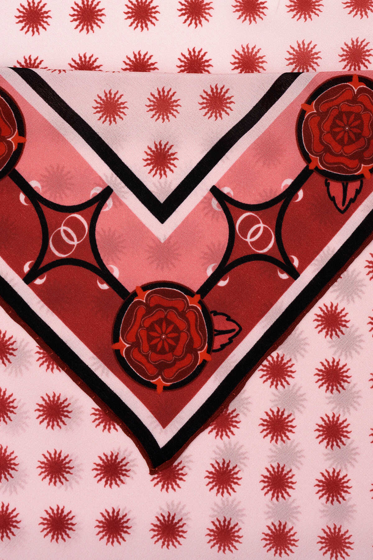 Gelince Haber VerDörtlü Gonca Krep İpek Şal - 70x200 cm | %100 Krep İpek | Zarif Gonca Desenleri