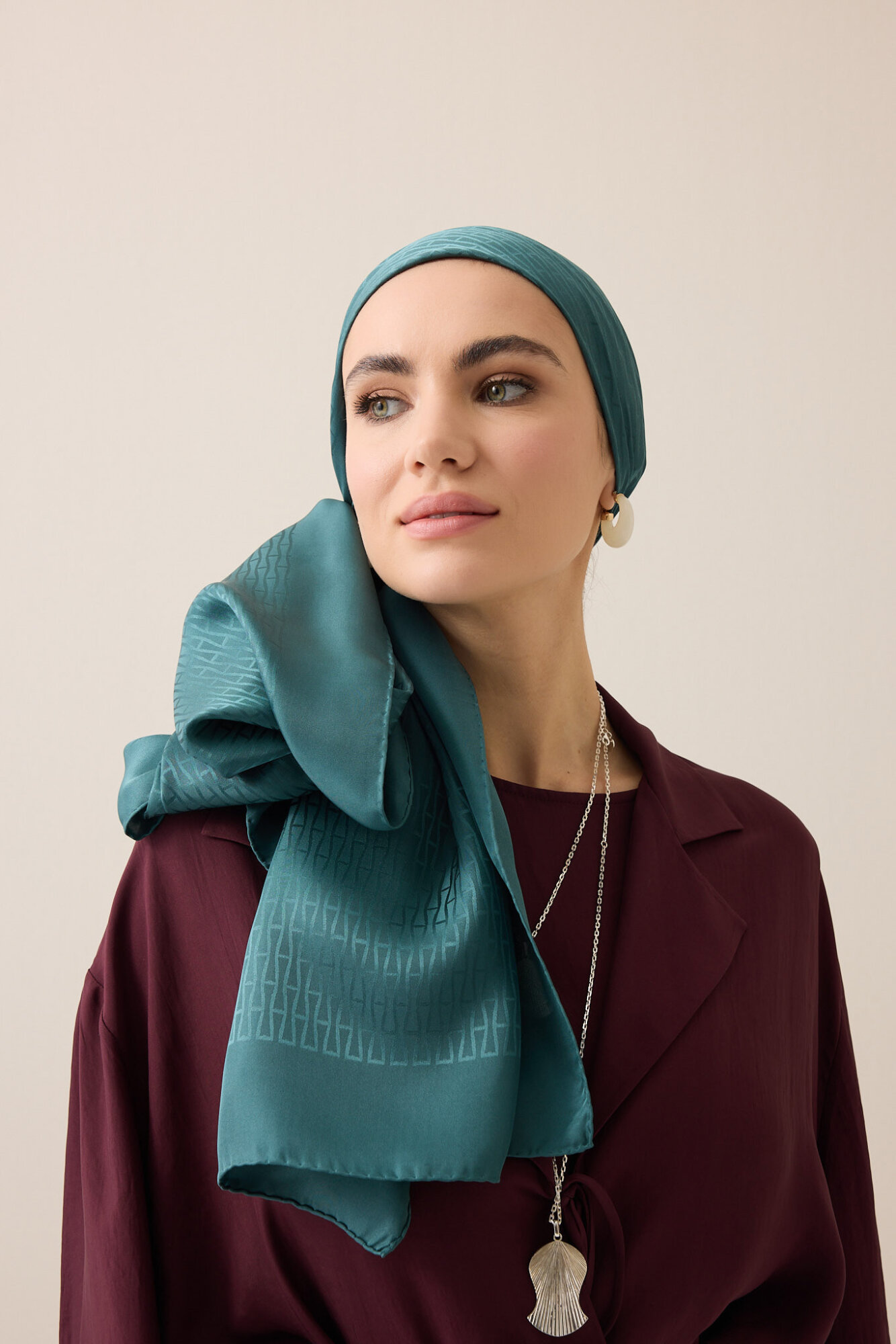 Faith I Green Petrol Jacquard Silk Shirt Scarf