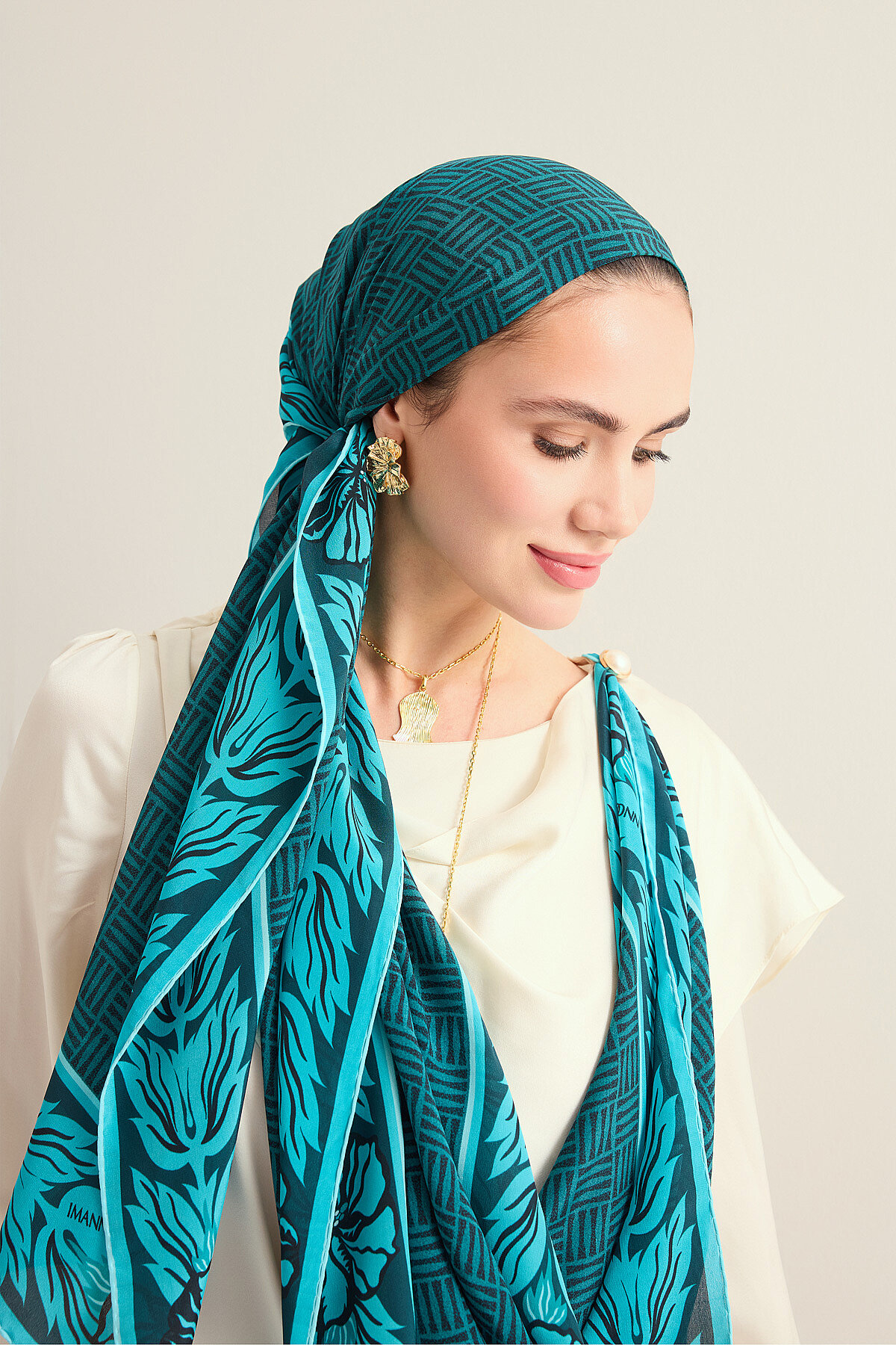 Zarif çiçek bordür detayları ve dokulu İman Kare deseniyle tasarlanan bu krep ipek şal, %100 ipek yapısıyla hafif, akıcı ve nefes alan bir kullanım sunar. 70x210 cm ölçüsü sayesinde farklı bağlama stillerine uyum sağlar; hem günlük kombinlerde hem de özel davetlerde sofistike bir dokunuş oluşturur. Krep ipeğin doğal mat ışıltısı ve yumuşak tuşesi, tasarıma zarif bir derinlik kazandırırken zamansız bir şıklık sunar.