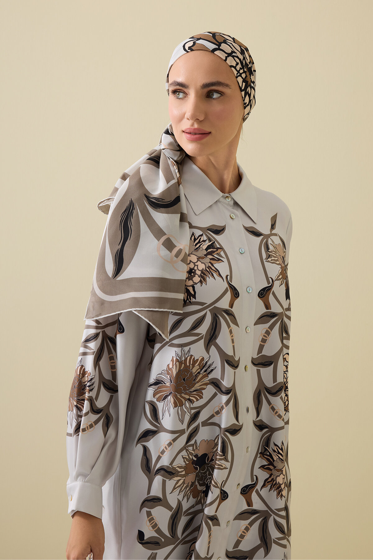 İmannoor’un doğadan ilham alan tasarım anlayışıyla şekillenen Çiçek Yolu İpek Gömlek Elbise, %100 ipek kumaşıyla hafif, akışkan ve doğal parlaklığa sahip bir görünüm sunar. Gömlek formundaki yapısı, klasik bir sadelik sunarken; ince çiçek desenleriyle romantik bir hava katıyor.