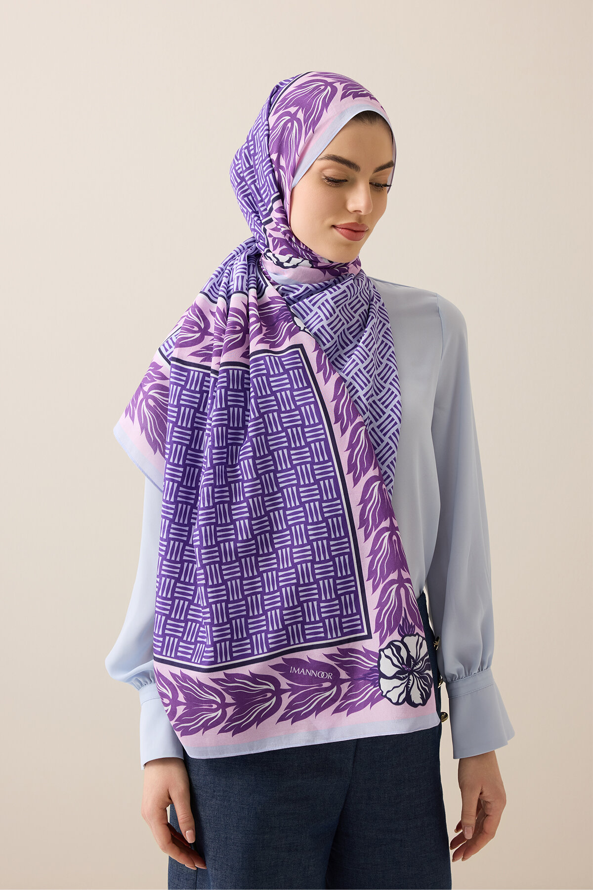 70x210 cm ölçüsü ile kolay şekil alan bu şal, günlük kombinlerden özel gün stiline kadar her tarza uyum sağlar. Sade ve zamansız tasarımıyla İmannoor’un zarif stil anlayışını yansıtan bu ürün, gardırobunuzun vazgeçilmez parçalarından biri olmaya adaydır.