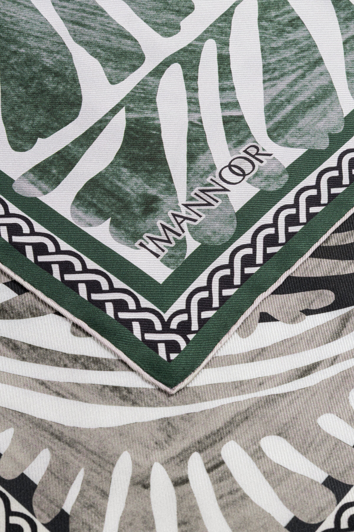 Çift taraflı tasarımı sayesinde farklı kombinlerde, tek parça ile iki ayrı görünüm elde edebilirsiniz. 94x94 cm ölçüsüyle boyun, baş, çanta ya da bilek aksesuarı olarak rahatlıkla kullanılabilir.