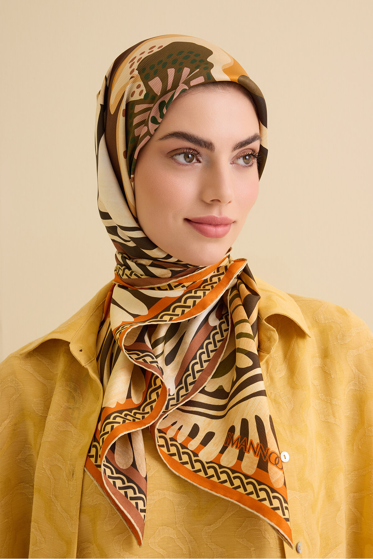Çift taraflı tasarımı sayesinde farklı kombinlerde, tek parça ile iki ayrı görünüm elde edebilirsiniz. 94x94 cm ölçüsüyle boyun, baş, çanta ya da bilek aksesuarı olarak rahatlıkla kullanılabilir.
