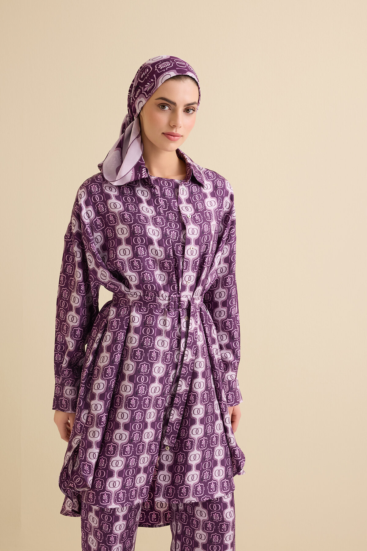 Zarafeti sade çizgilerle buluşturan İmannoor Girdap İpek Uzun Gömlek, ipeğin doğal ışıltısı ve akışkan dokusuyla sofistike bir görünüm sunar. “Girdap” deseninin ritmik hareketi, tasarıma zarif bir dinamizm kazandırırken, uzun formu modern ve rahat bir siluet oluşturur.