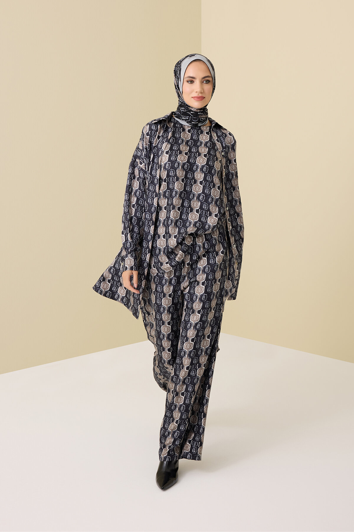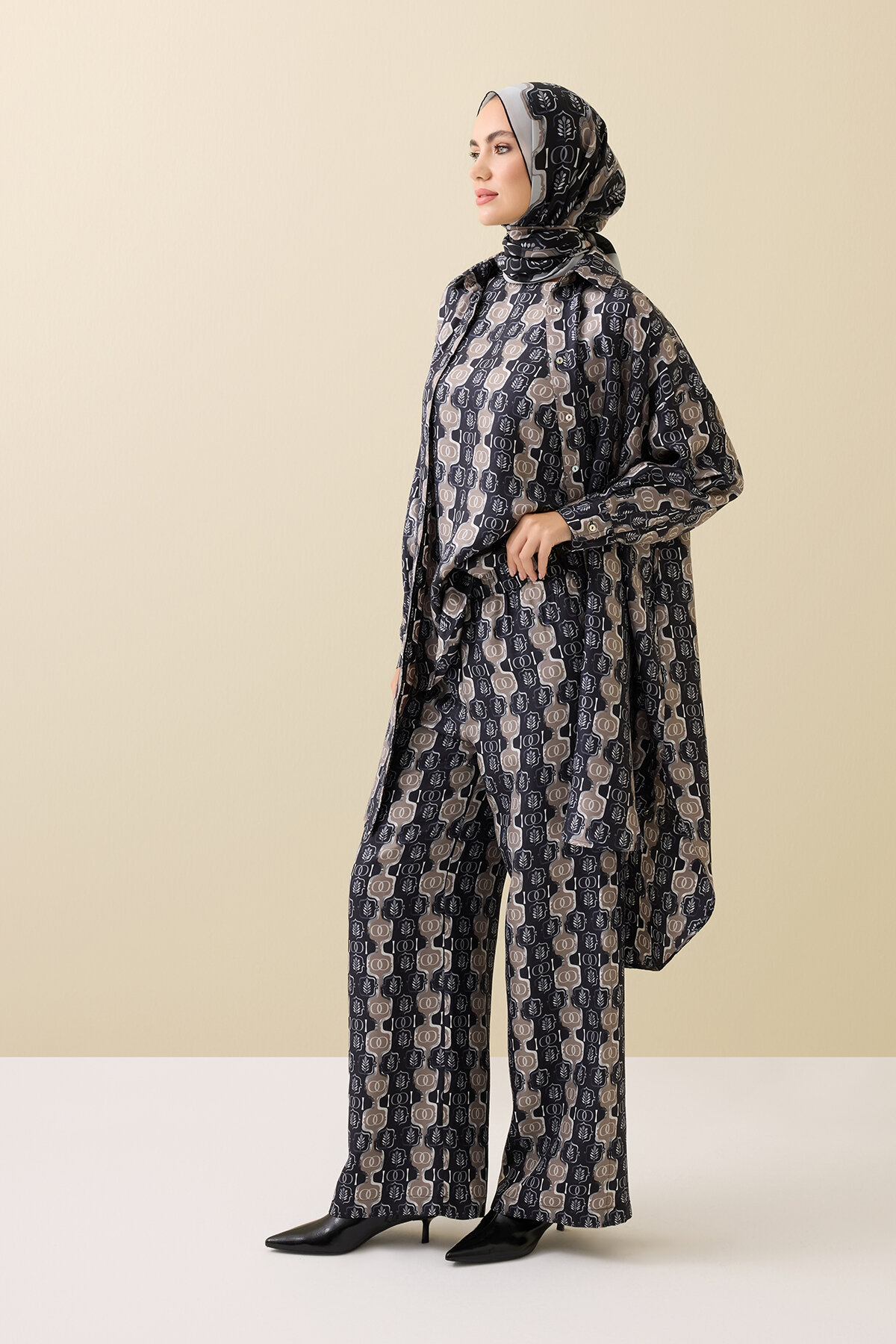 %100 saf ipek kumaşı sayesinde nefes alır, cilde serinlik hissi verir ve gün boyu lüks bir konfor sunar. Hafif yapısı ve rahat kesimiyle evde şıklığı ve özgürlüğü aynı anda hissettirir.