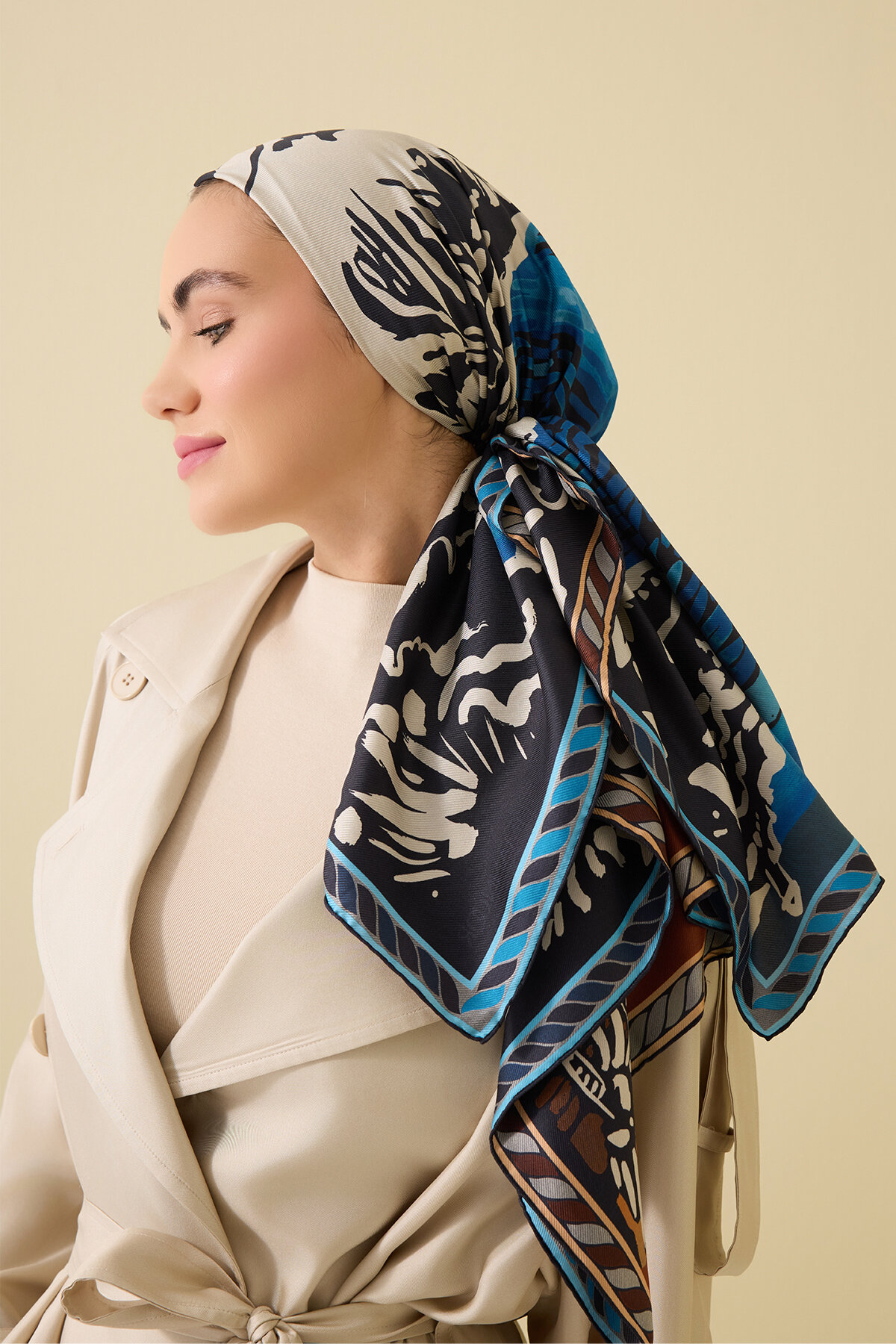 ✔ 90x90 cm Ölçü: Farklı bağlama stilleri için ideal boyut.