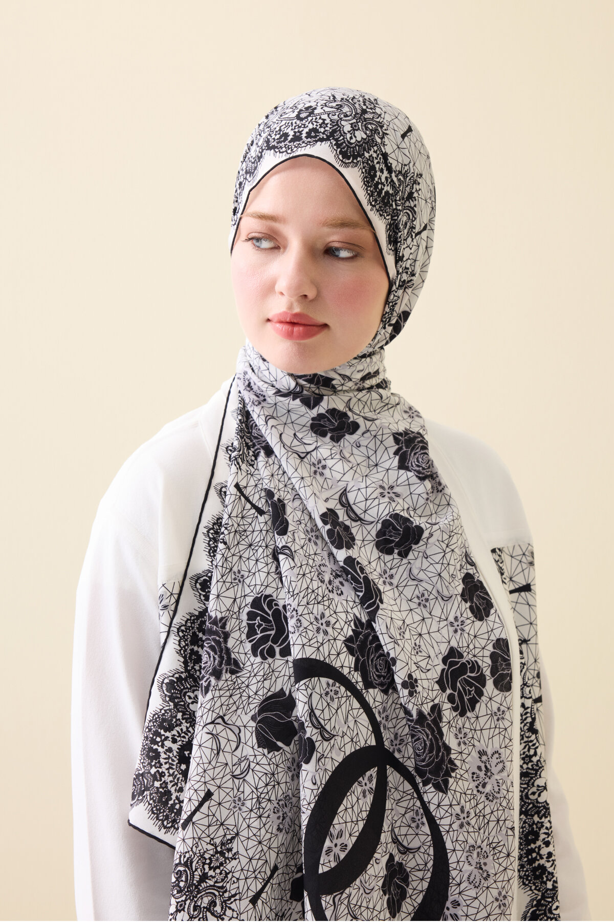 %100 krep ipekten üretilen Gül Dantel Krep İpek Kaftan Şal, zarif ve romantik detaylarıyla şıklığın en ince hâlini yansıtıyor. 70x210 cm ölçüsüyle farklı bağlama stillerine uygun yapısı, akıcı ve hafif dokusuyla gün boyu konfor sunar. Gül dantel desenleriyle süslenen bu özel tasarım, kaftan şıklığını şalın zamansız zarafetiyle buluşturur. Hem günlük kombinlerinize zarif bir dokunuş, hem de özel günlerde tamamlayıcı bir parça olarak öne çıkar.