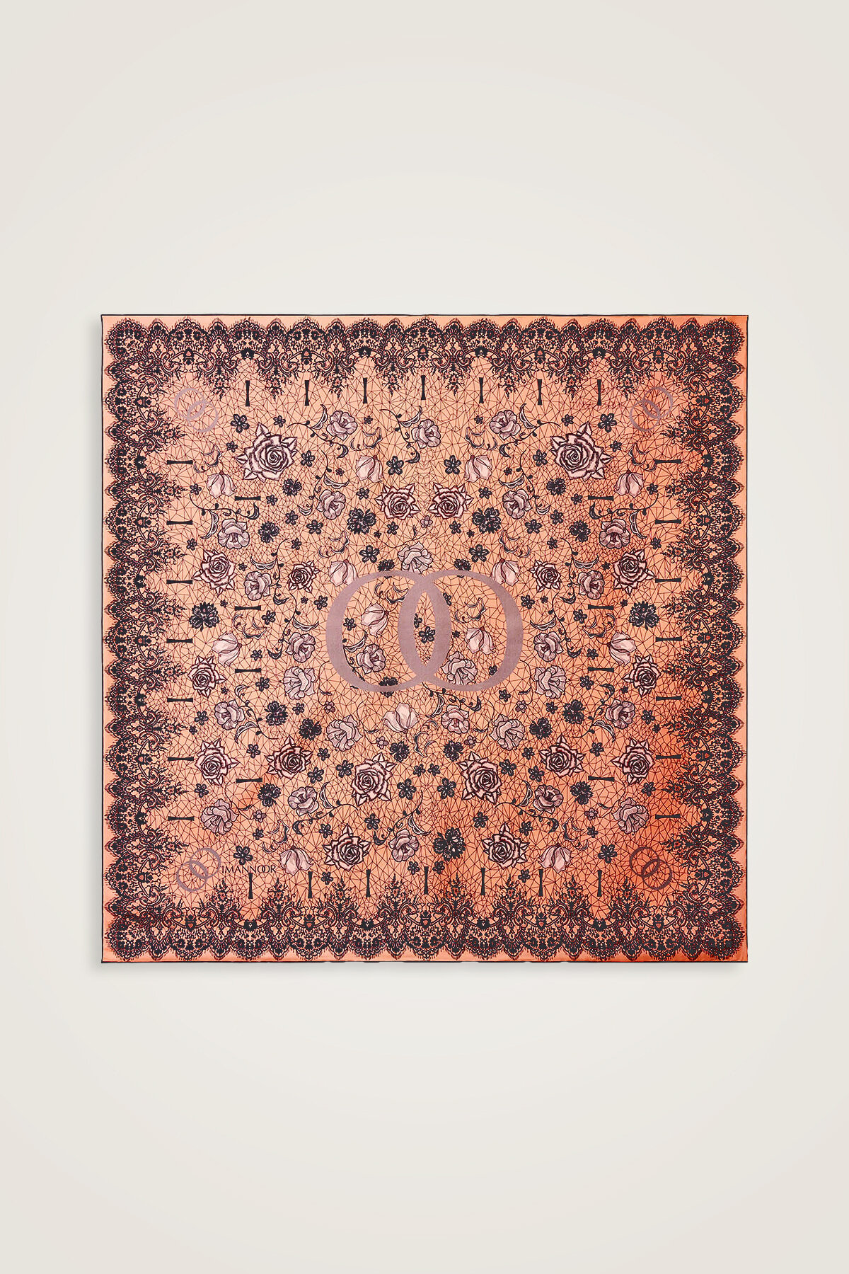 Rose Lace Powder-Light Orange Double-Sided Twill Silk Scarf