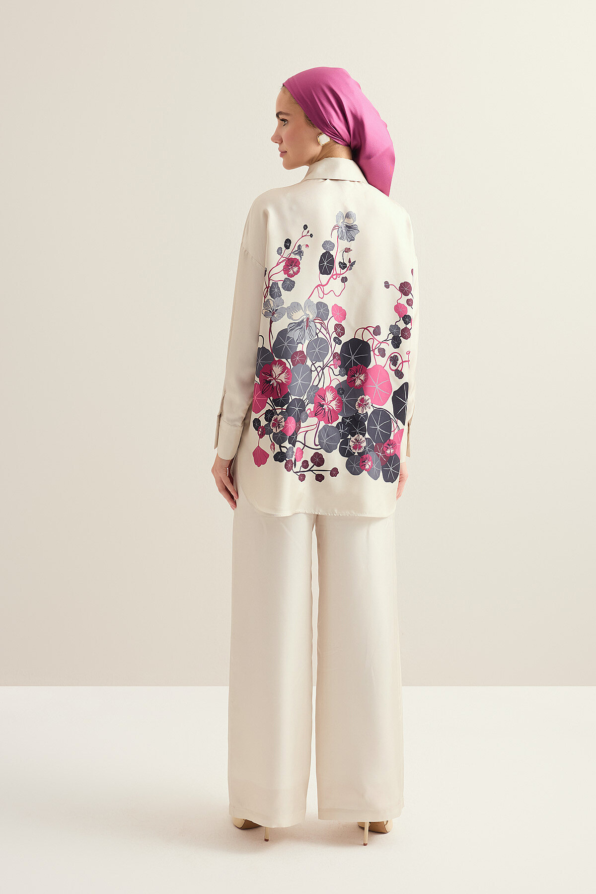 İmannoor’un doğadan ilham alan zarif tasarım anlayışını yansıtan Havuz Çiçeği İpek Pantolon, Tivil ipek dokusunun tok ama akışkan yapısı sayesinde vücutta net ve dengeli bir duruş sunar; havuz çiçeğinden ilham alan özel deseniyle stile ferah, feminen ve sofistike bir karakter kazandırırken, ipeğin doğal parlaklığı lüks bir görünüm sağlar, nefes alabilen ve pürüzsüz yapısı gün boyu konfor sunar ve hem günlük şık kombinlerde hem de özel stillerde zamansız bir parça olarak gardırobunuzda öne çıkar.