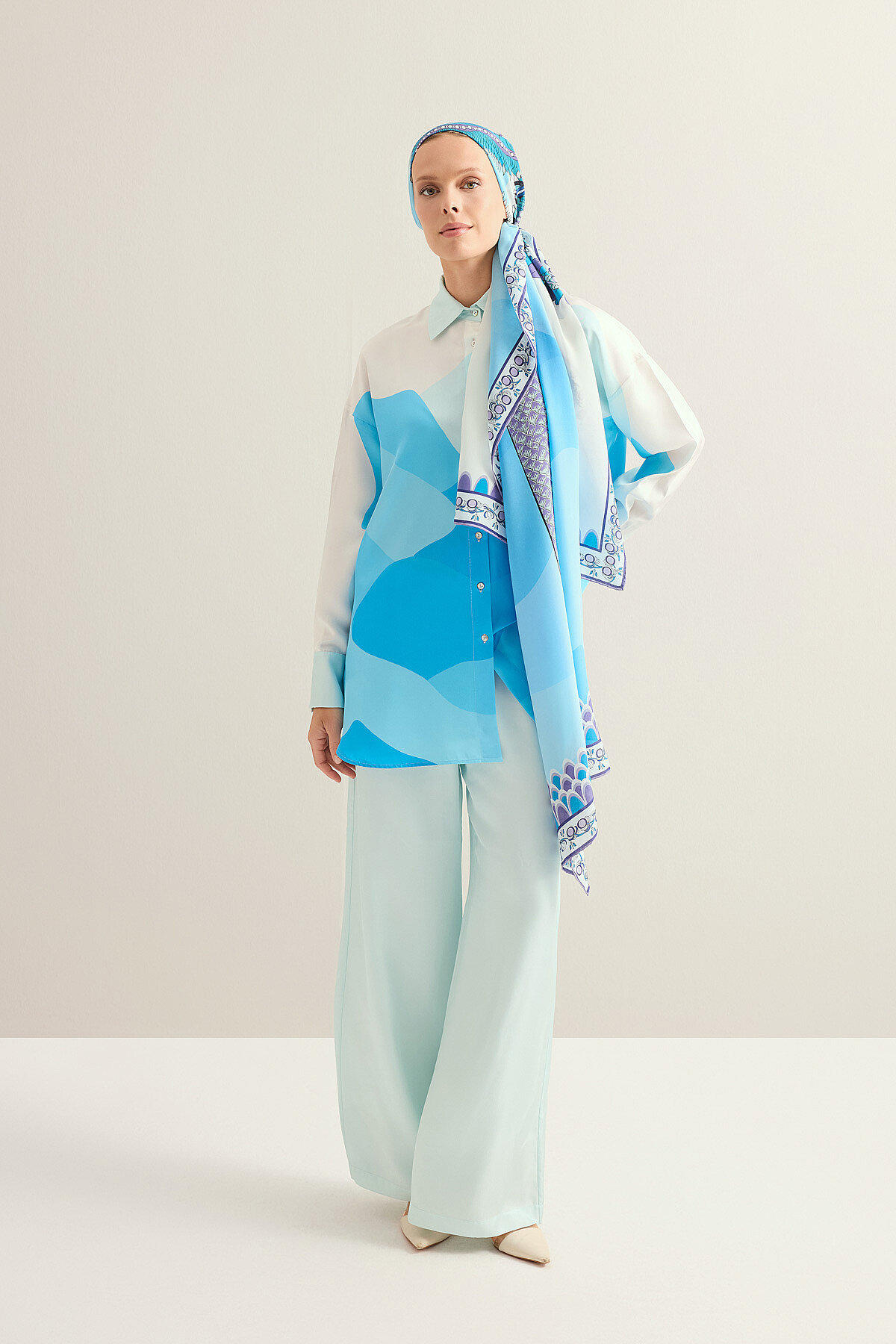 Hurma Ağacı Mavi Krep İpek Gömlek Şalı 70x210