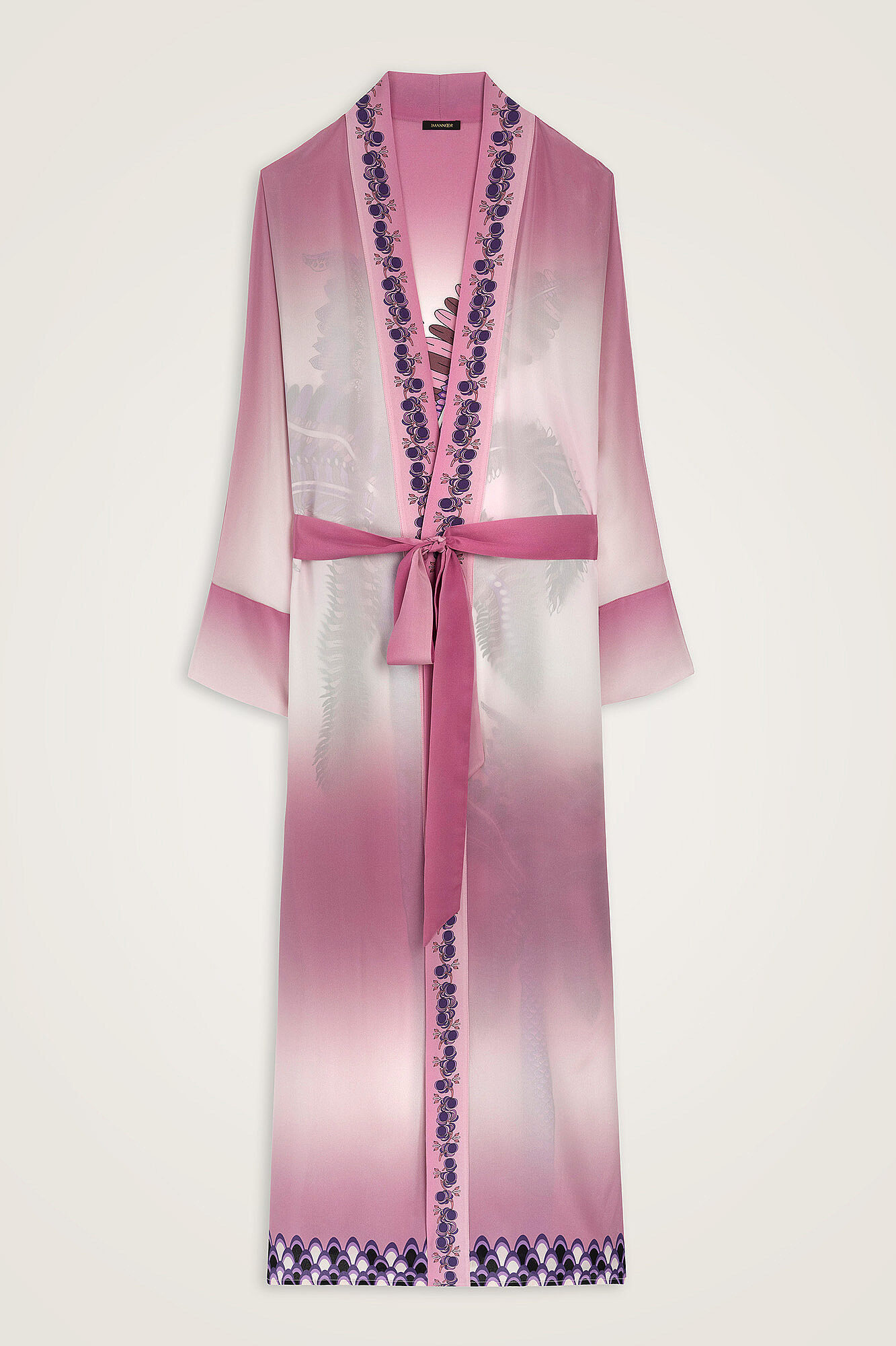 İmannoor x Rawdah Degrade Otrişli Pembe İpek Kısa Kimono