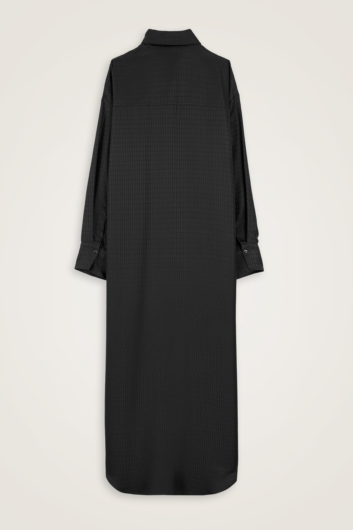 İmannoor’un sade ama güçlü tasarım anlayışını yansıtan %100 jakarlı ipek İman I Jakarlı İpek Gömlek Elbise, jakarlı dokumanın kendine özgü dokulu yüzeyi ve ipeğin doğal parlaklığı sayesinde vücutta sofistike ve net bir duruş sunar; minimalist çizgilerle öne çıkan özel deseni elbiseye modern ve zamansız bir karakter kazandırırken, gömlek elbise formu rahat ve akışkan bir siluet oluşturur, tok ama yumuşak yapısı gün boyu konfor sağlar ve hem gündüz şıklığında hem de özel davetlerde zarif bir stil ifadesi olarak öne çıkar.