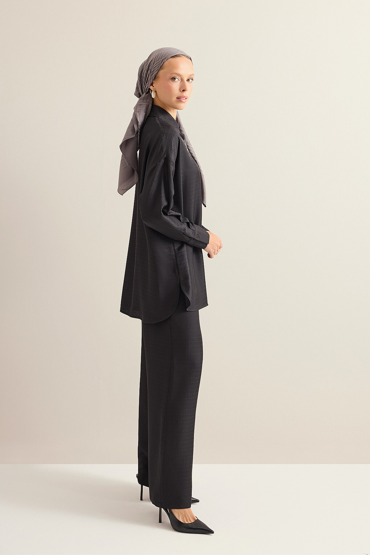 İmannoor’un sade ama güçlü tasarım anlayışını yansıtan %100 jakarlı ipek İman I Jakarlı İpek Pantolon, jakarlı dokumanın kendine özgü dokulu yüzeyi ve ipeğin doğal parlaklığı sayesinde vücutta dengeli ve sofistike bir duruş sunar; minimalist desen anlayışıyla zamansız bir şıklık kazandırırken, tok ama akışkan yapısı gün boyu konfor sağlar, hem klasik hem de çağdaş kombinlerde kolayca uyum sağlayan seçkin ve iddialı bir parça olarak gardırobunuzda öne çıkar.