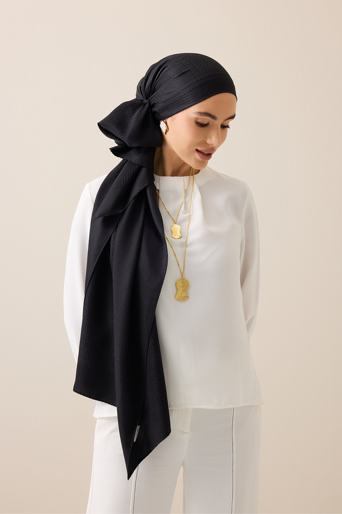 İman I Siyah Jakar İpek Gömlek Şalı 70x200