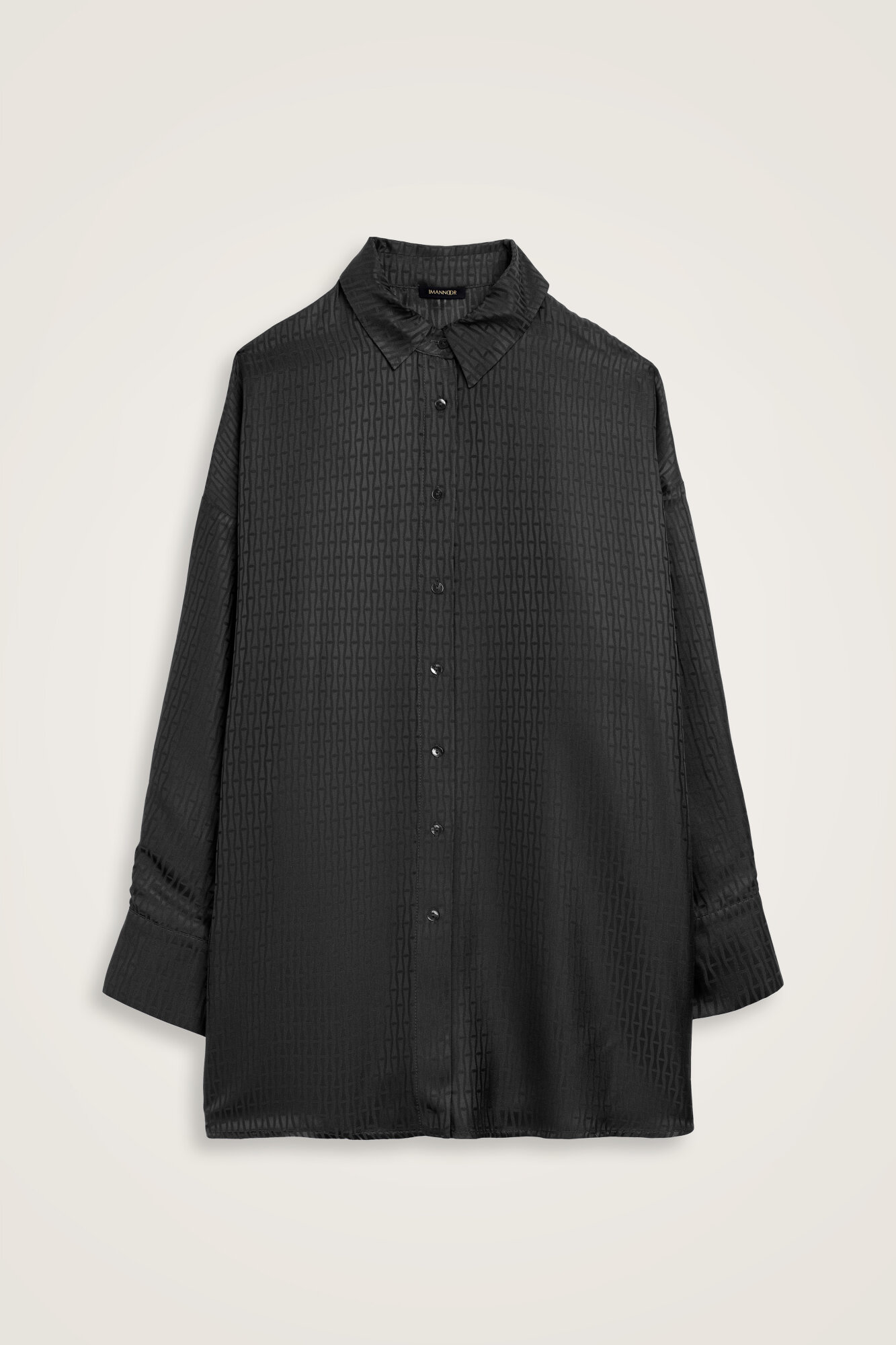 İman Kare Dokulu Siyah İpek Gömlek