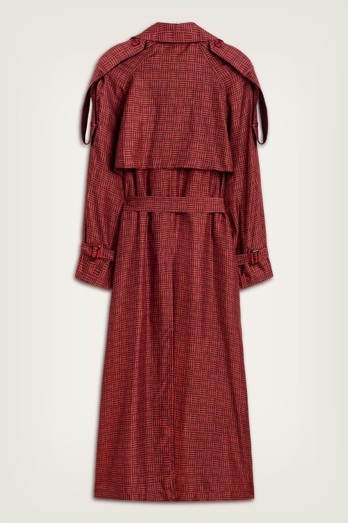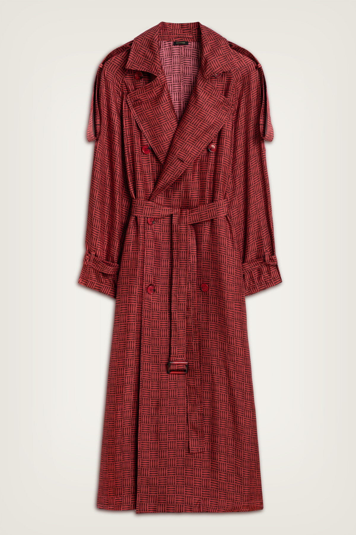 İman Kare Dokulu İpek Trençkot ile dış giyimde ipeğin zarafetini ve dokunun modern gücünü keşfedin.
