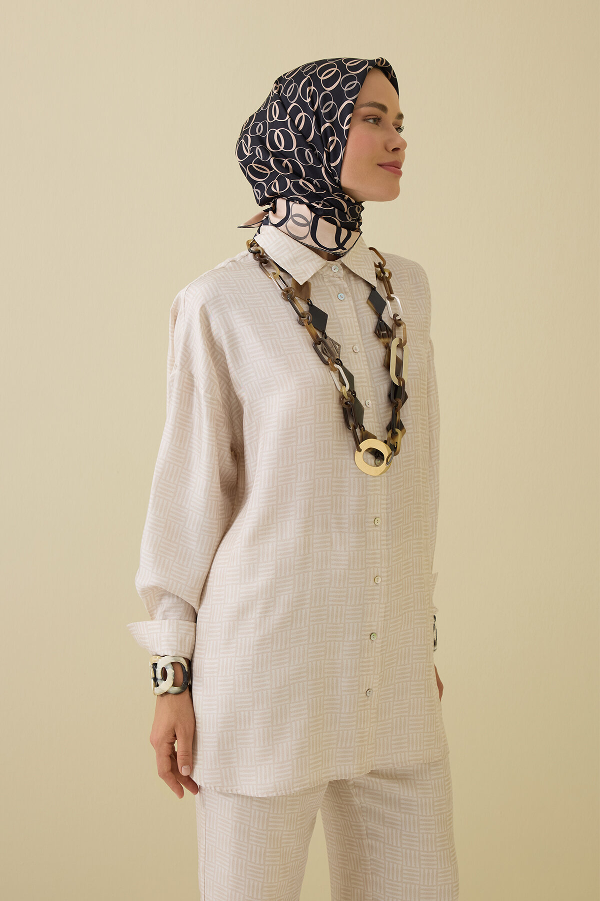 İman Kare Dokulu İpek Gömlek ile sade çizgilerdeki zarafeti modern dokularla hissedin.