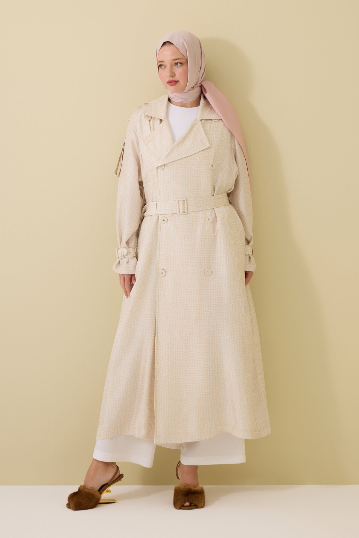 Gelince Haber Verİman Kare Dokulu İpek Trençkot