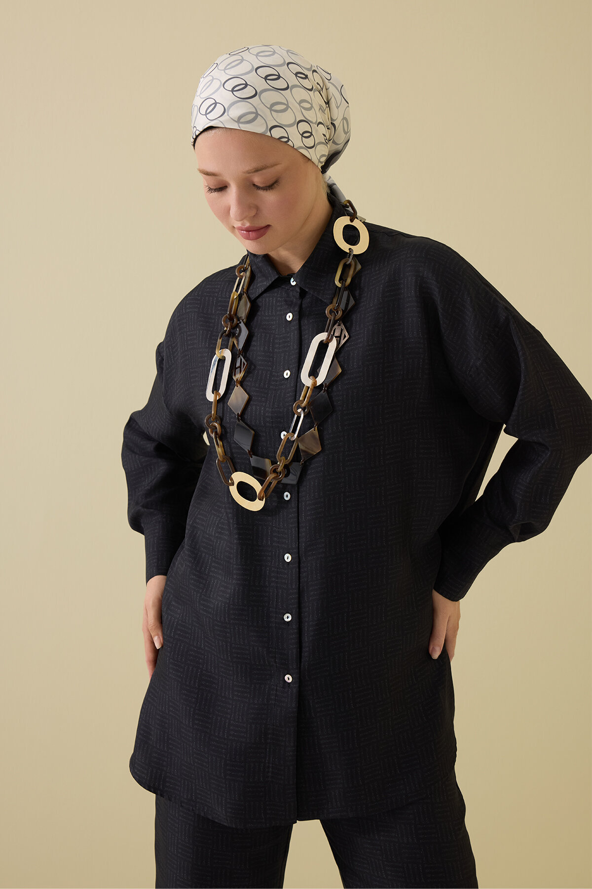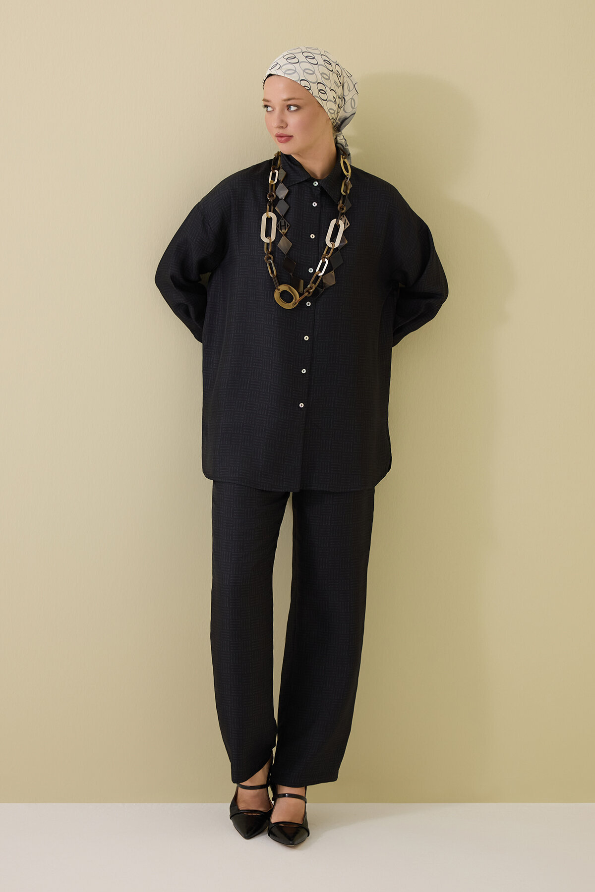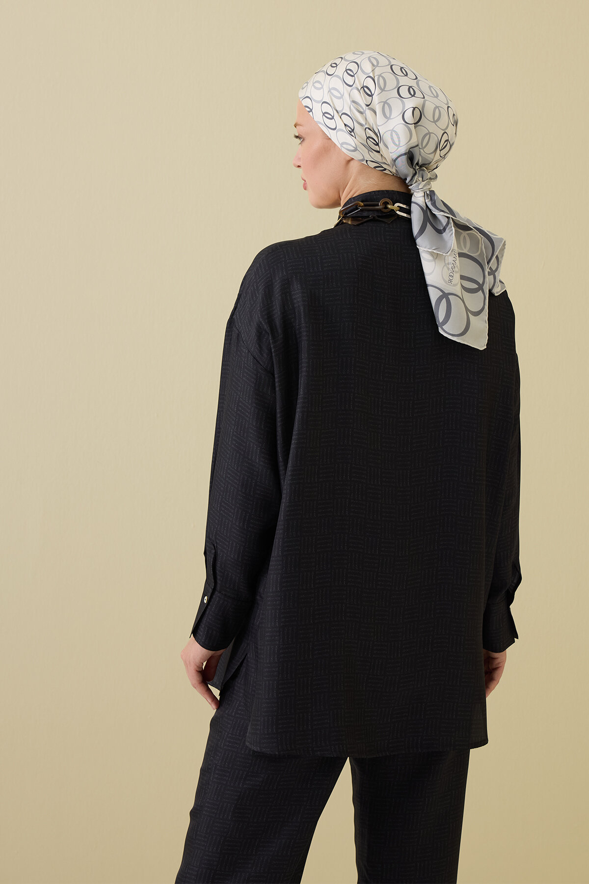 İman Kare Dokulu İpek Gömlek ile sade çizgilerdeki zarafeti modern dokularla hissedin.