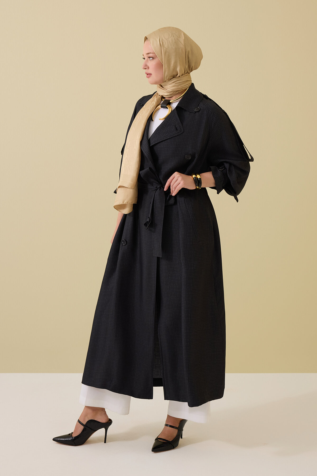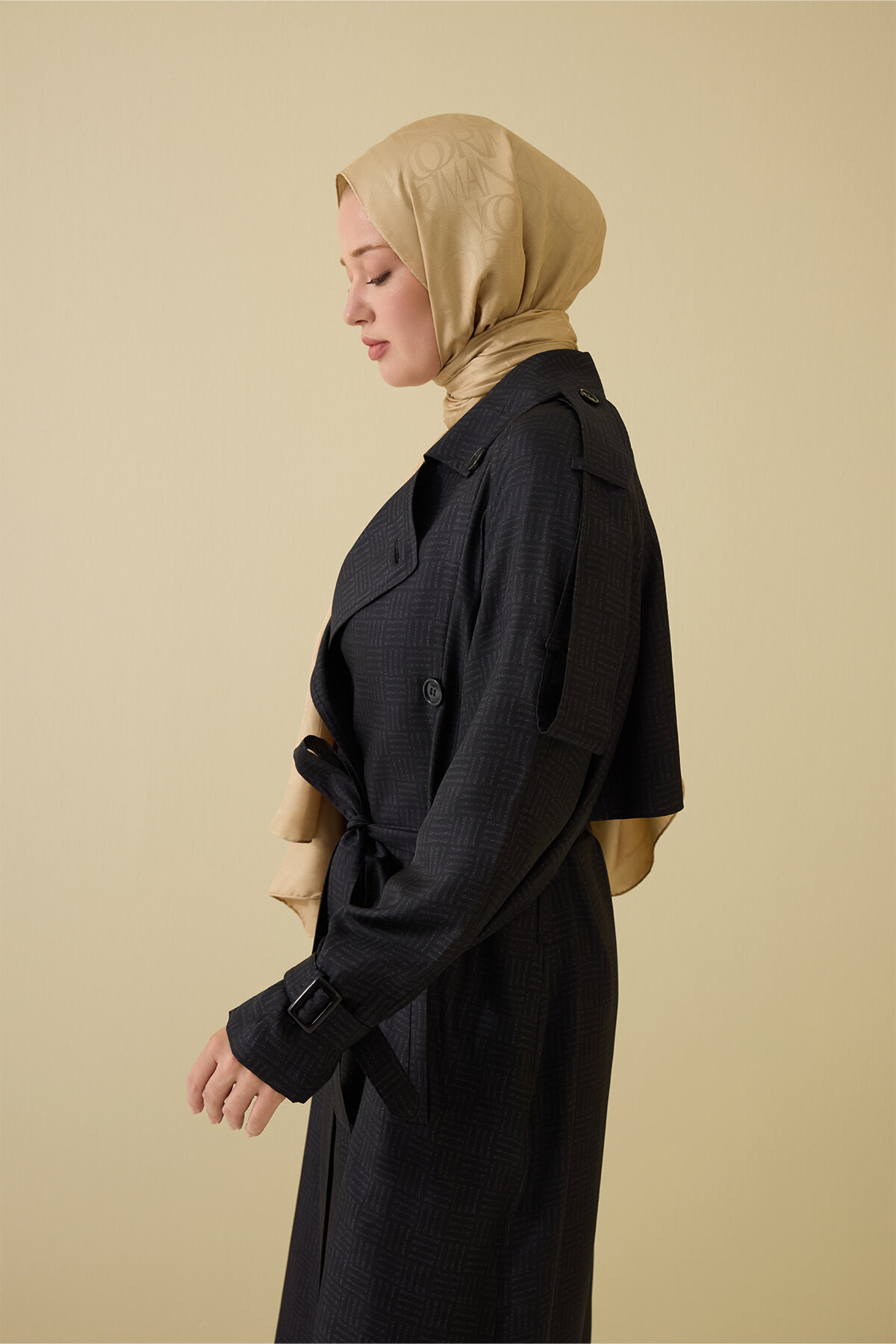 Gelince Haber Verİman Kare Dokulu İpek Trençkot