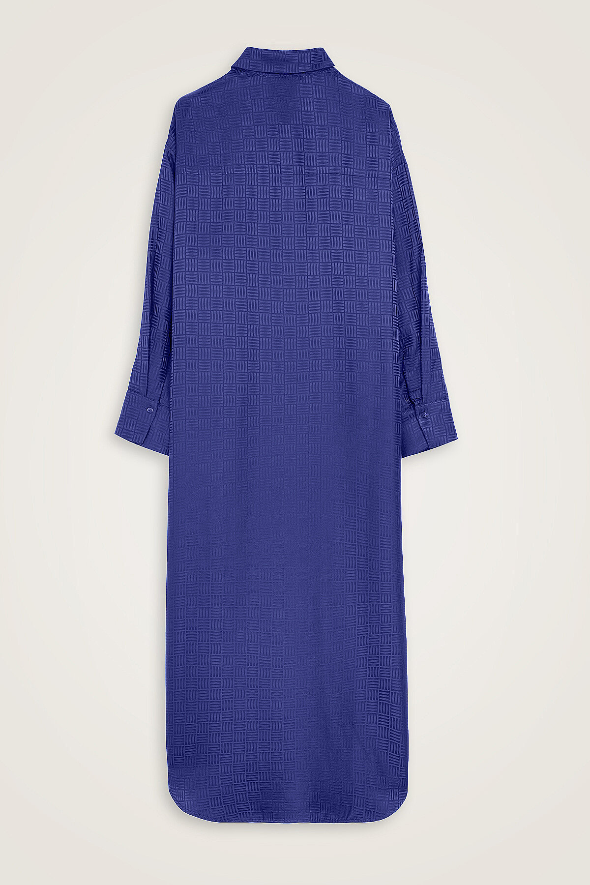 İmannoor’un zarif ve güçlü tasarım anlayışını yansıtan %100 jakarlı ipek İman Kare Jakarlı İpek Gömlek Elbise, jakarlı dokumanın kendine özgü dokulu yüzeyi ve ipeğin doğal parlaklığı sayesinde vücutta sofistike ve dengeli bir duruş sunar; kare desenli özel tasarımıyla stile modern ve karakterli bir ifade kazandırırken, gömlek elbise formu zamansız ve rahat bir siluet oluşturur, tok ama akışkan yapısı gün boyu konfor sağlar ve hem gündüz şıklığında hem de özel davetlerde güçlü bir stil parçası olarak öne çıkar.